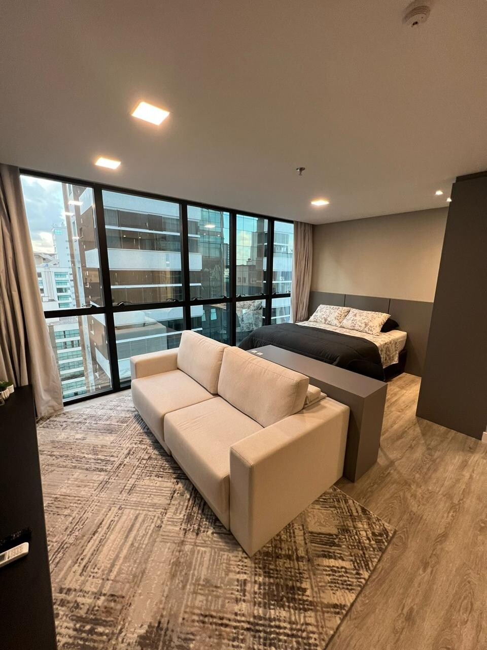 Modern comfort just steps from the sea! Just steps from the beach, this studio was designed for those who value comfort and location. It features a double bed, sofa, Smart TV, air conditioning, an equipped kitchen with integrated dining area, and a charming balcony with city view. The building offers a heated pool and jacuzzi on the rooftop, gym, and game room. Only 220 m from the sea and surrounded by great dining options. Book now and enjoy a complete experience in Meia Praia.