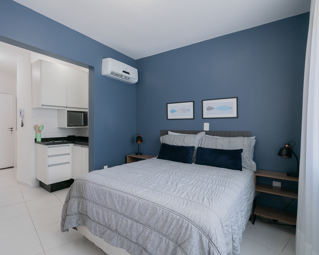 O Studio Basic é um ap completo de 25m2 localizado a 50m da praia. Possuí uma cama de casal, equipamentos de cozinha, televisão smart, wi-fi e ar-condicionado. É cercado por bares, restaurantes e supermercado. Está cercado por bares, restaurantes e supermercado. O edifício em si oferece uma série de comodidades adicionais como: estacionamento, piscina, jacuzzi, mercadinho 24h, academia e área gourmet com churrasqueira.