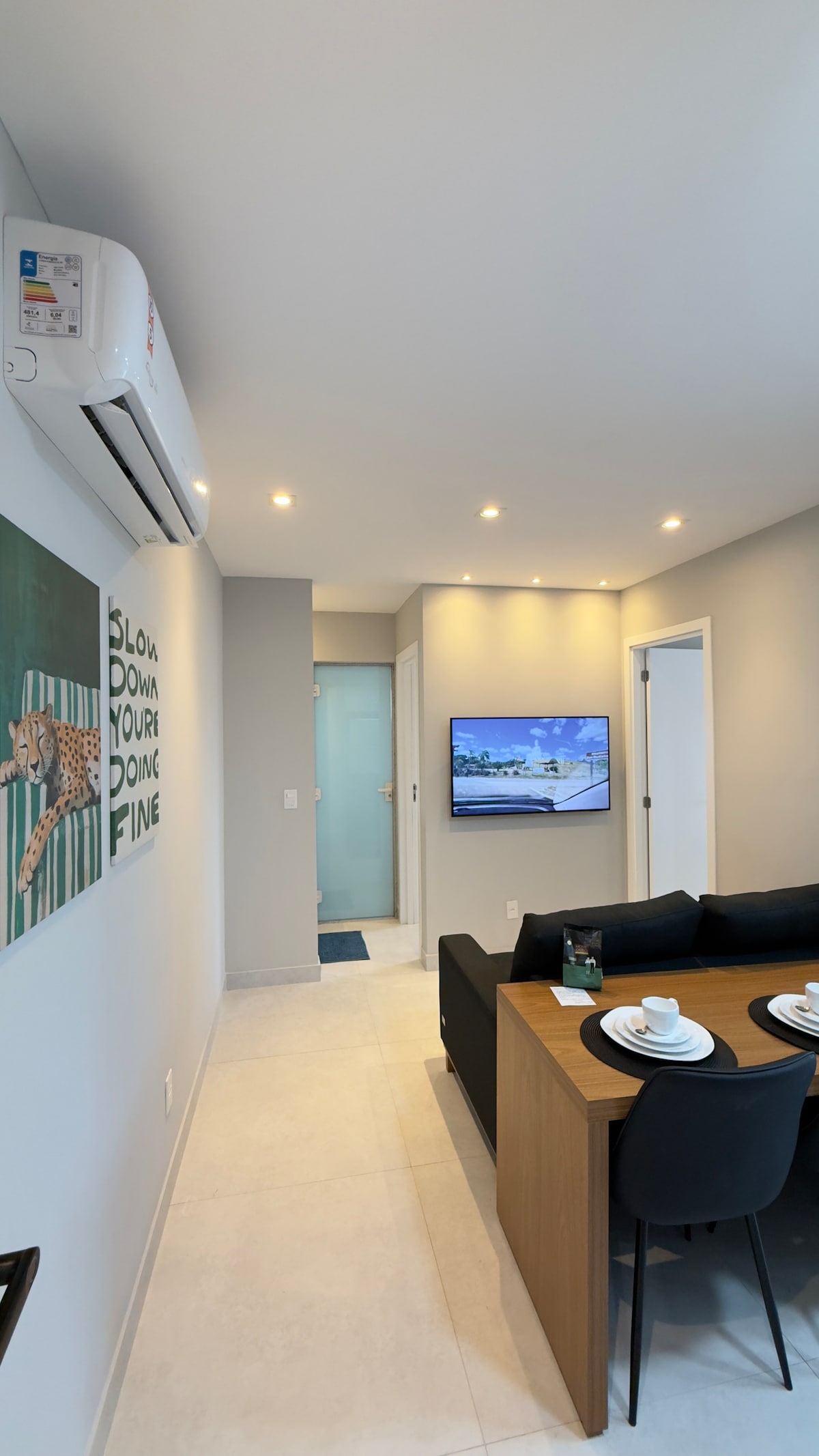 Apto, estilo loft, moderníssimo e acolhedor. Novinho. Cama Queen, ótimo chuveiro. Tudo bem planejado e decorado. Cozinha americana. Todo equipado: Ar condicionado no quarto, fogão, geladeira, micro-ondas, forno, smart tv. Toalhas e roupas de cama para os hóspedes.