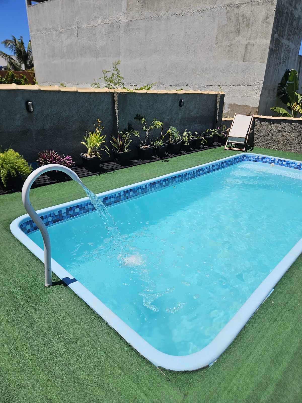 Have a perfect stay listening to the sounds of the waves! Relax in our grassy garden with trees, enjoy our pool overlooking the sea and have special moments in our gourmet area with barbecue facilities and beer tap. Our home has 4 bedrooms, all with air AC, with 3 being en-suite. There is a cozy living room with satellite tv; a games room with darts and snookers and a beautiful kitchen with a balcony boasting stunning views of the ocean. It is excellent for home-office with 420 mz internet.