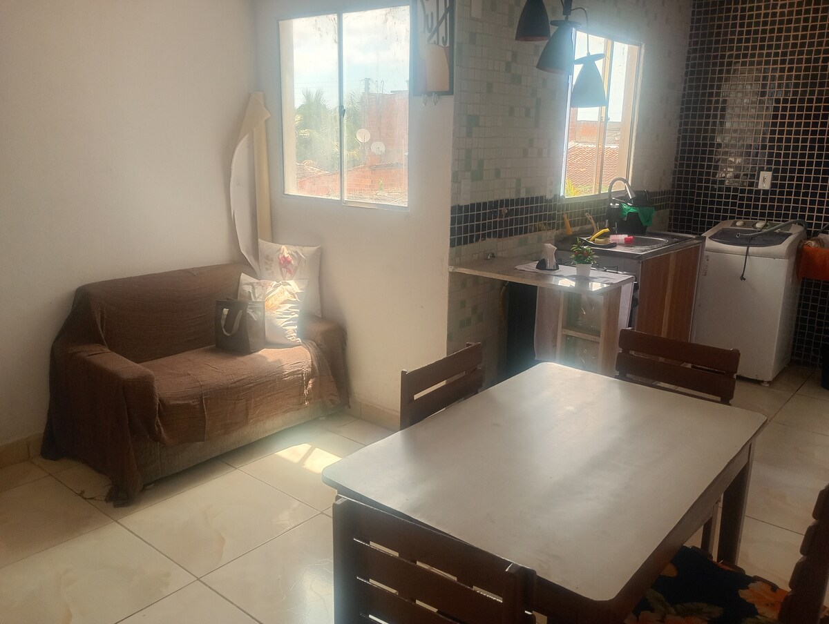 Ótimo loft/casa à 100 metros da praia de Pajuçara. Quarto e banheiro no primeiro andar com cama de casal padrão, sala grande com uma bicama e um terraço espaçoso no primeiro andar. O imóvel é totalmente mobiliado com armários, ar condicionado para a casa toda, televisão, fogão, geladeira, ventilador. À 50 metros está localizado o Boulevard Pajuçara, um espaço fechado com várias opções de restaurantes e lanches. Estamos também à 800 metros do Centro de Convenções.