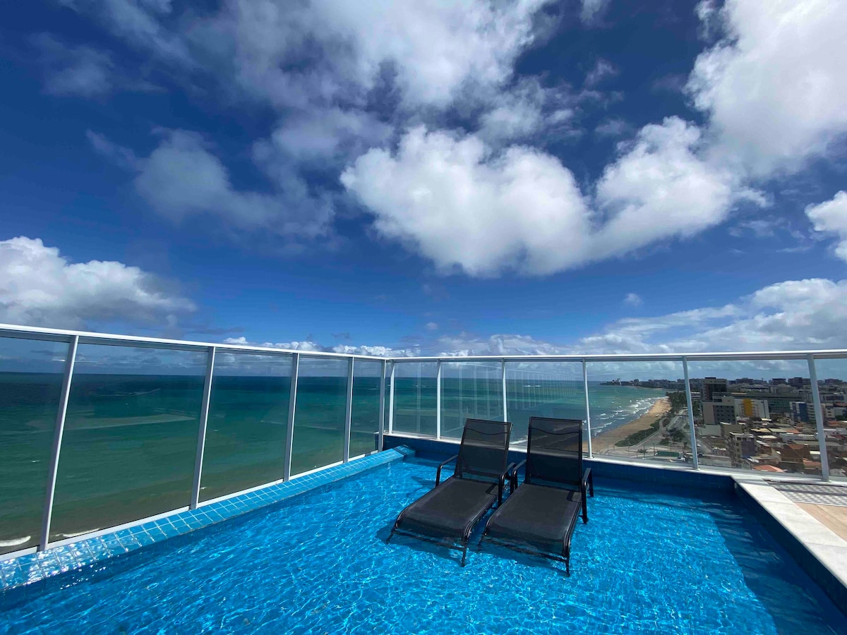 EDIFICIO SKY CONCEPT.Este lugar único tem um estilo próprio. Flat 1 quarto para até 6 hóspedes na melhor localização da Jatiúca. Prédio com sistema moderno ,lazer completo para melhor atender nossos hóspedes. Apartamento super equipado e completo com tudo que nossos visitantes precisam para uma estadia perfeita . Recém lançado , tome seu café da manhã olhando para o mar , e desfrutando de um flat decorado e equipado . Temos roupas de cama , toalhas , secador e ferro de passar roupas e máquina.