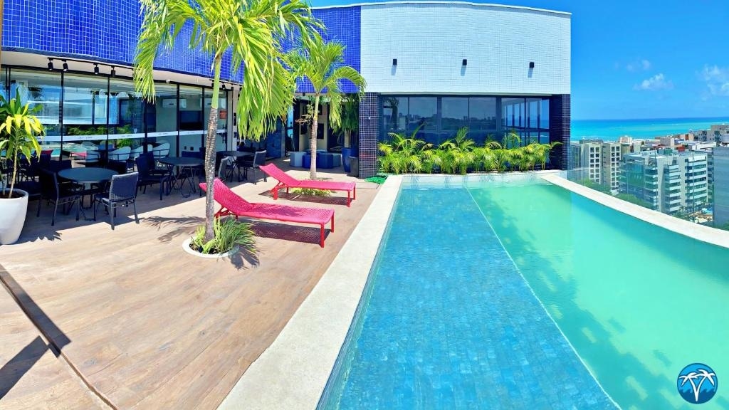 Sky Concept 704 Encante-se com nosso estúdio à beira-mar em Maceió, Alagoas! Localizado na primeira quadra da deslumbrante praia de Jatiúca, nosso aconchegante studio oferece a combinação perfeita de tranquilidade à beira-mar e fácil acesso aos melhores bares e restaurantes da cidade. Além disso, o prédio dispõe de uma academia 24 horas, uma piscina com borda infinita no rooftop, um mercadinho conveniente, e um agradável café/restaurante que oferece serviço de quarto mediante solicitação.