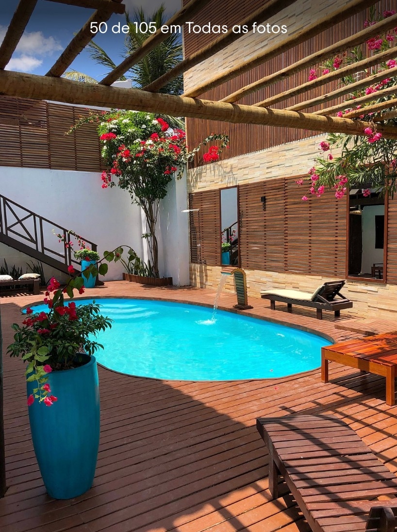 A Villa Aura é uma encantadora vila privativa de 268m2 composta por 3 quartos e 3 banheiros, localizada a 150m da praia e a 300m da maior escola de kitesurf do Brasil, o Rancho do Kite. A Villa Aura possui uma piscina privativa e um terraço de 45m2 com uma vista excepcional para o mar. Cercada por um jardim tropical, a Villa Aura combina o charme da arquitetura tradicional e o conforto moderno com ar-condicionado e água quente. A Villa Aura é a garantia de uma estadia em um cenário mágico.