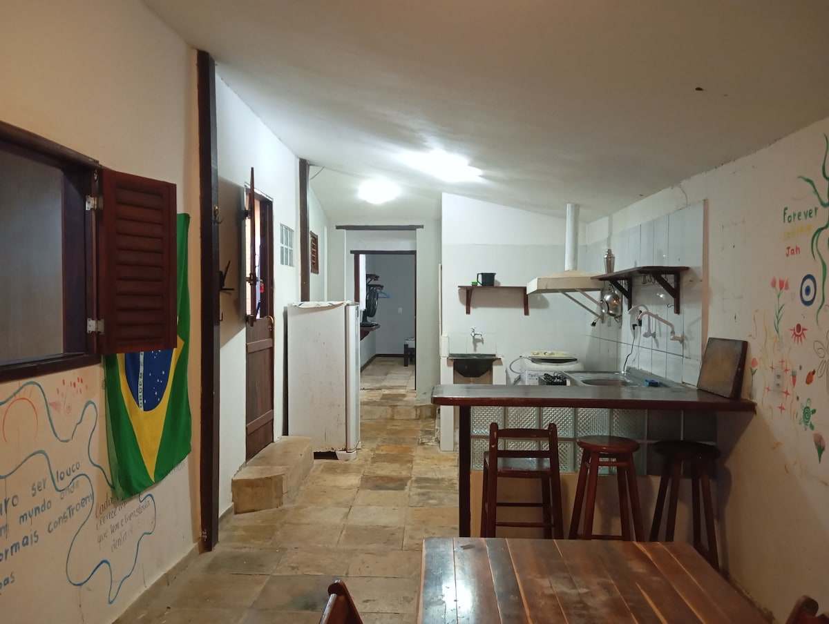 Casa Santorini faz parte da vila Mikonos onde há 3 casas: a casa Athenas onde eu moro, a casa Mikonos anunciada também no airbnb e a casa Santorini que é a maior das três. Com mais de 220 m2, cozinha completa, sala de estar, cinco quartos, dois no nível térreo, com um banheiro, churrasqueira e no andar superior mais três quartos, sala de estar aberta com terraço com vista maravilhosa e mais um banheiro. Todos os quartos possuem ar condicionado, (menos o do beliche), roupa de cama e toalhas.