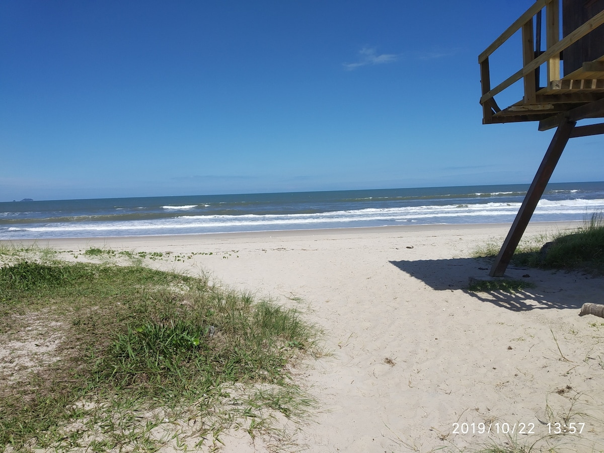 A Cabana Sand foi toda feita à mão, idealizada e construída por quem ama o mar e a simplicidade. Aqui você encontra banheiras de imersão com água quente, ar condicionado, TV, etc. A cozinha é equipada com todos os utensílios necessários para que você se sinta em casa. O charme fica por conta da decoração com temática de mar, quadros de artistas Curitibanos e um toca discos dos anos 70 que te fará voltar no tempo! O chalé fica a duas quadras da praia, 5 minutos do embarque para a Ilha do Mel.