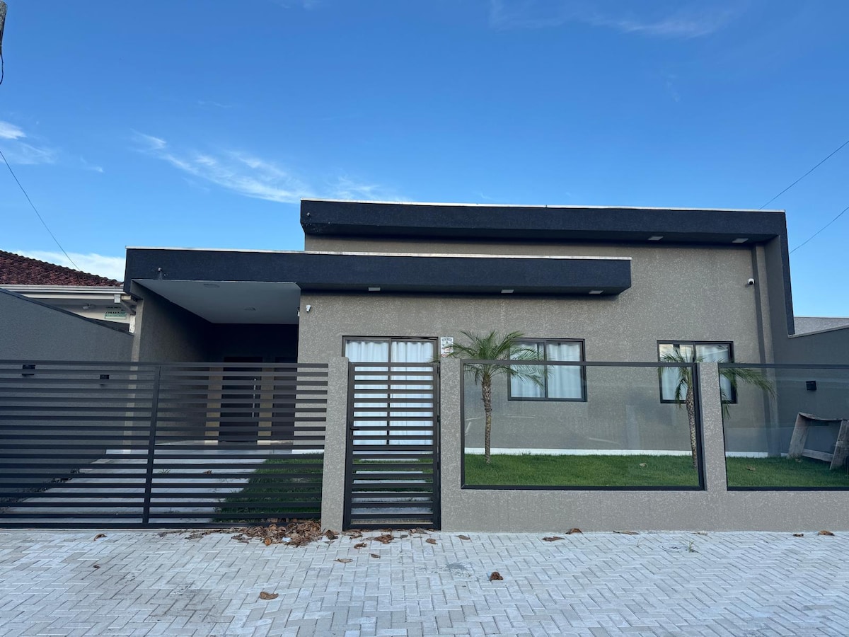 Casa confortável com 3 quartos, a suíte possui ar condicionado compartilhado com o quarto ao lado, no restante ventiladores de teto. Supermercado completo com panificadora e açougue a 5 minutos e todo tipo de comércio próximo. fácil acesso a Ilha do Mel, matinhos, Caiobá e Guaratuba. A casa possui uma casa nos fundos totalmente independente e privativa também alugada pelo Airbnb. Tudo é separado garagem, portão, churrasqueira, quintal, balneário famíliar e tranquilo 🏝🌊🏖☀️🦐🍻