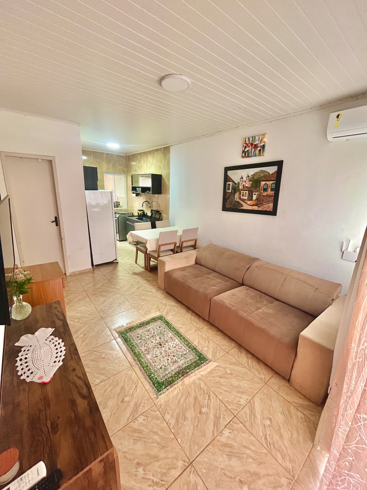 Kitinete aconchegante para até 4 pessoas com vários aparelhos eletrodomésticos,cama com colchão densidade 60,sofá cama tv smart ,utensílios domésticos , ventiladores,liquidificador,cafeteira, ferro de passar,Wi-Fi. Não aceito pet. Não é permitido fazer churrasco por causa da fumaça e nem fumar Narguile ou maconha.Aceita se somente casais ou casal com duas crianças ou adolescentes.Nao alugamos para galera. Para as datas do Ano Novo somente pacote mínimo 5 diárias.