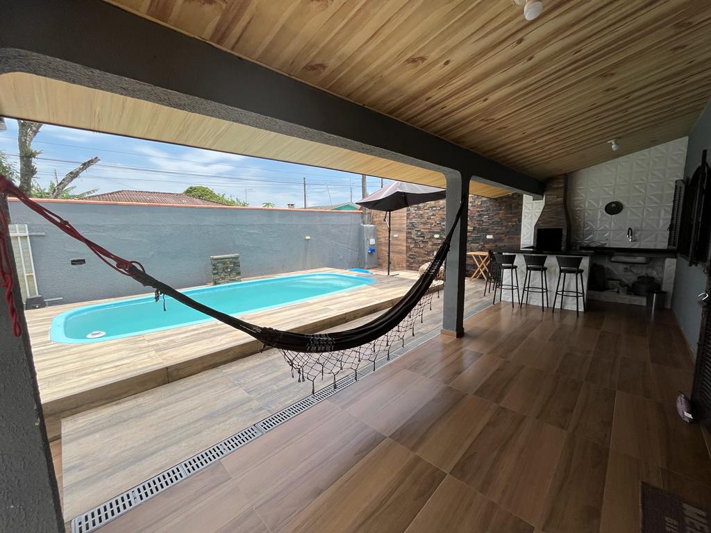 Venha usufruir de uma casa novinha a uma quadra da praia! Sobrado confortável com espaço de lazer para a família. Conta com piscina de 6 metros, churrasqueira em espaço externo, duas salas de TV, uma no pavimento inferior, outra no superior. Todos os três quartos com ar-condicionado e ventilador de teto, um deles fica no pavimento inferior, o que ajuda em caso de necessidade de acessibilidade. Banheiros amplos, sendo um em uma suíte. Queremos que se sintam acolhidos em nossa casa!!!