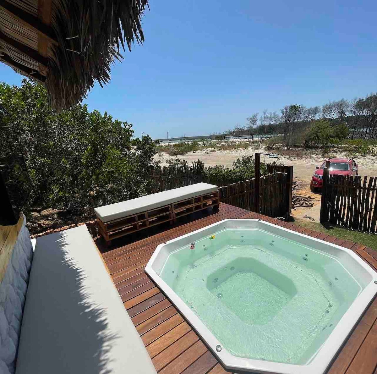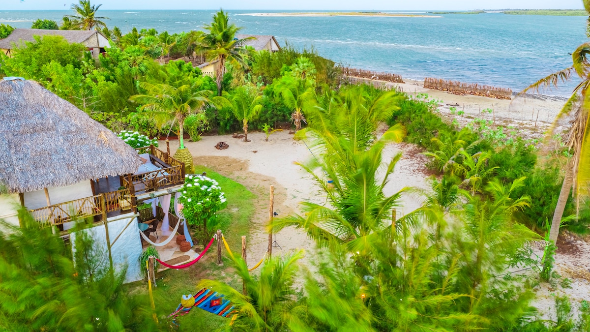Este é um refúgio que mistura o rústico com o moderno, bem localizado no coração do vilarejo, com restaurantes e armazéns próximos. Fica a apenas 800 metros da praia — cerca de 2 minutos de carro ou de 6 a 8 minutos de caminhada. Está também a poucos minutos de lindas atrações naturais como o Mangue Seco, o rio Camorupim, lagoas de águas mornas e o deslumbrante mar do nosso litoral. Ideal para quem busca conforto, boa localização e uma conexão genuína com a natureza.