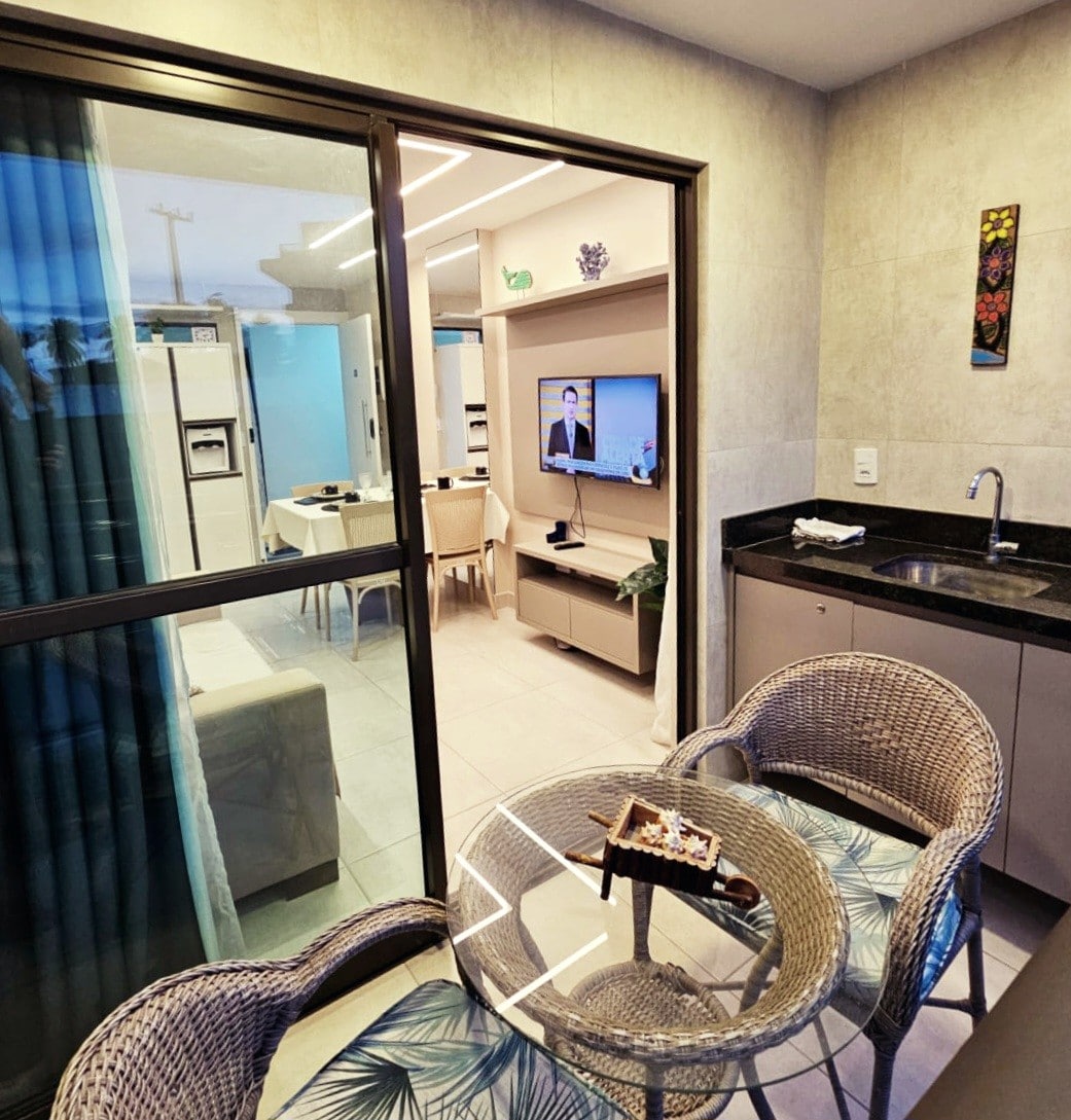 Luxurious flat located in the newest resort of the paradisiacal beach of Muro Alto, the Condominium La Fleur Polynesia. Located on the best and most beautiful stretch of beach, the residential has ample water park with 3,000 m of water mirror, acquaplay, playground, modern elevators, covered parking, tennis and multi-sports court and complete beach structure with chairs and umbrella -Sun.