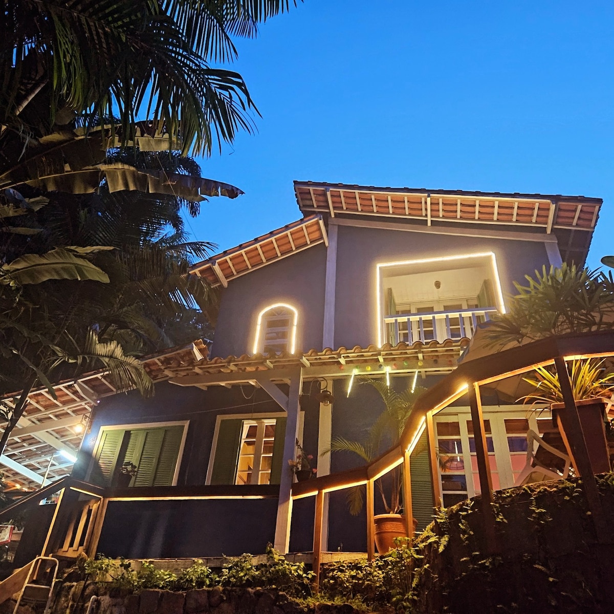 Todos os nossos chalés são privativos, com banheiro, cozinha completa, TV Smart e Wi-fi 300mb, o que permite você trabalhar caso precisar. Também temos ventilador de teto nos quartos e varanda privativa com vista para as montanhas. No geral o chalé é simples mas aconchegante, ideal para quem procura um lugar sossegado próximo a praia e rodeado por natureza, sem muito luxo e com um ótimo custo benefício.
