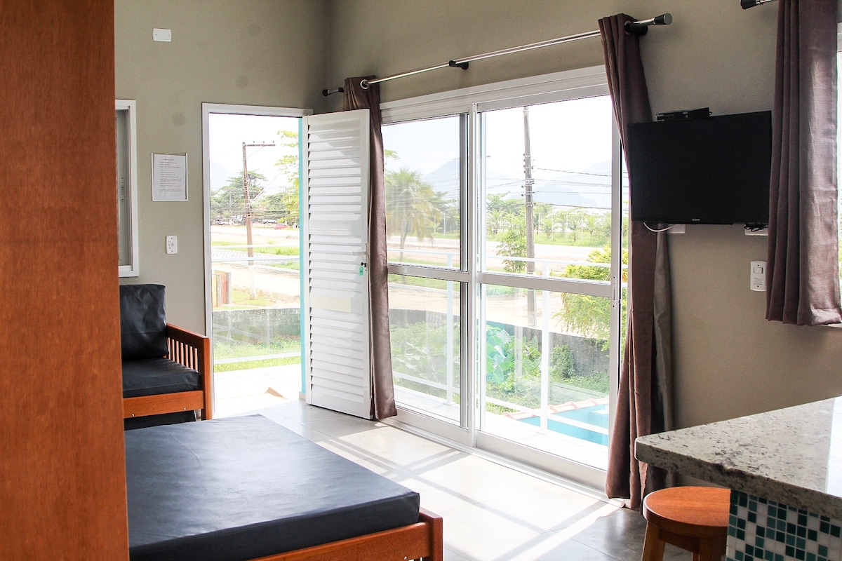 Desfrute de dias inesquecíveis no nosso flat completo, localizado a apenas 400 metros da praia de Boiçucanga e a poucos minutos de cachoeiras paradisíacas. Ideal para quem busca tranquilidade, conforto e contato com a natureza, o espaço está dentro de uma charmosa pousada com piscina, redário e clima acolhedor.
