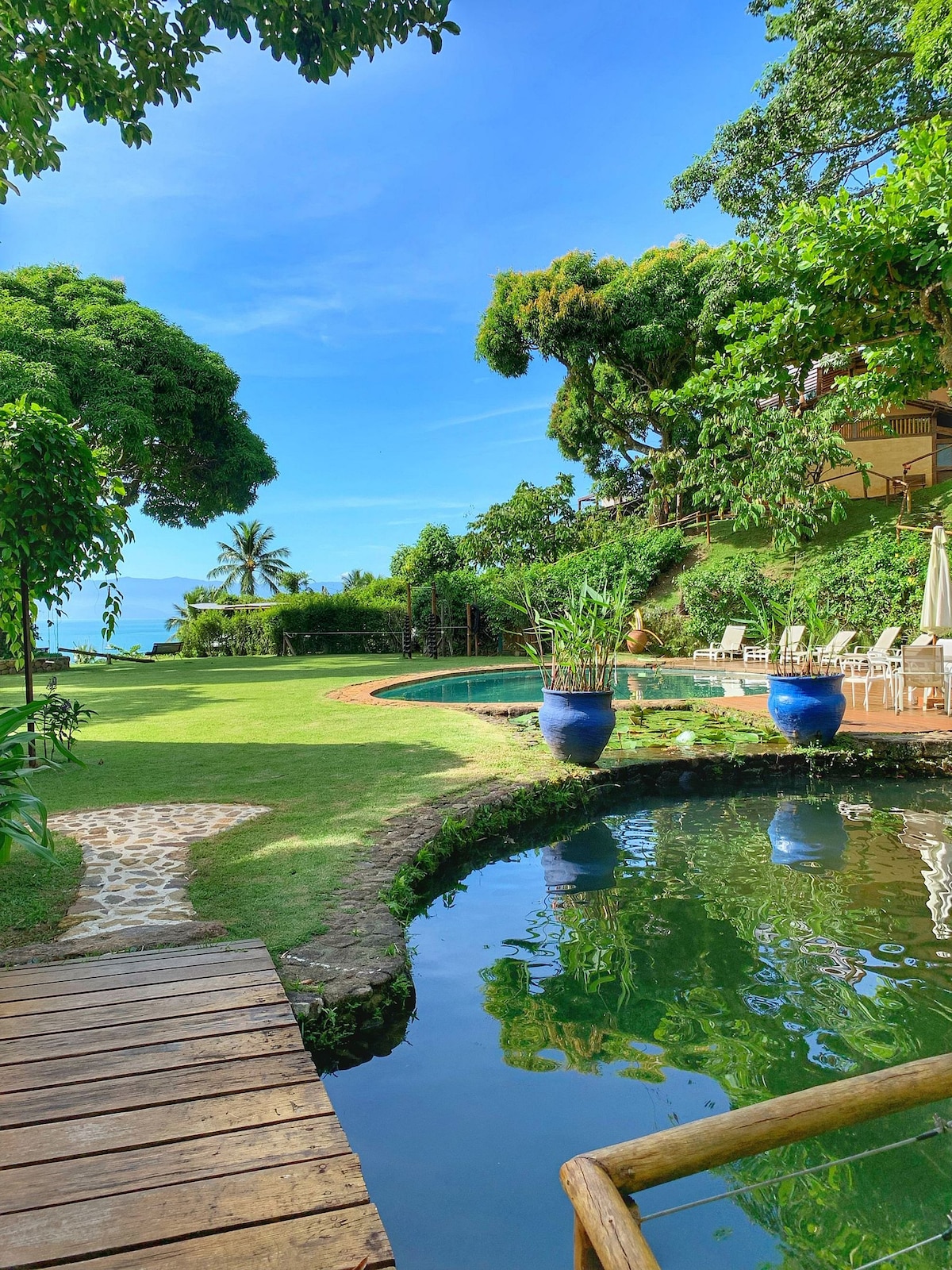 Casa completa em terreno paradisíaco de 7.000m² com outras 9 casas para casal independentes e privativas. A Casa Lótus possui quarto amplo, cozinha, banheiro espaçoso e bem iluminado com chuveiros a gás, e varanda espaçosa com vista para o mar e para o jardim ornamental. Além de oferecer cozinha completíssima, com todos os equipamentos necessários a casa conta ar condicionado, Smart TV, internet wifi, aquecedor a gás e secador de cabelo. É uma experiência de imersão com conforto de primeira!