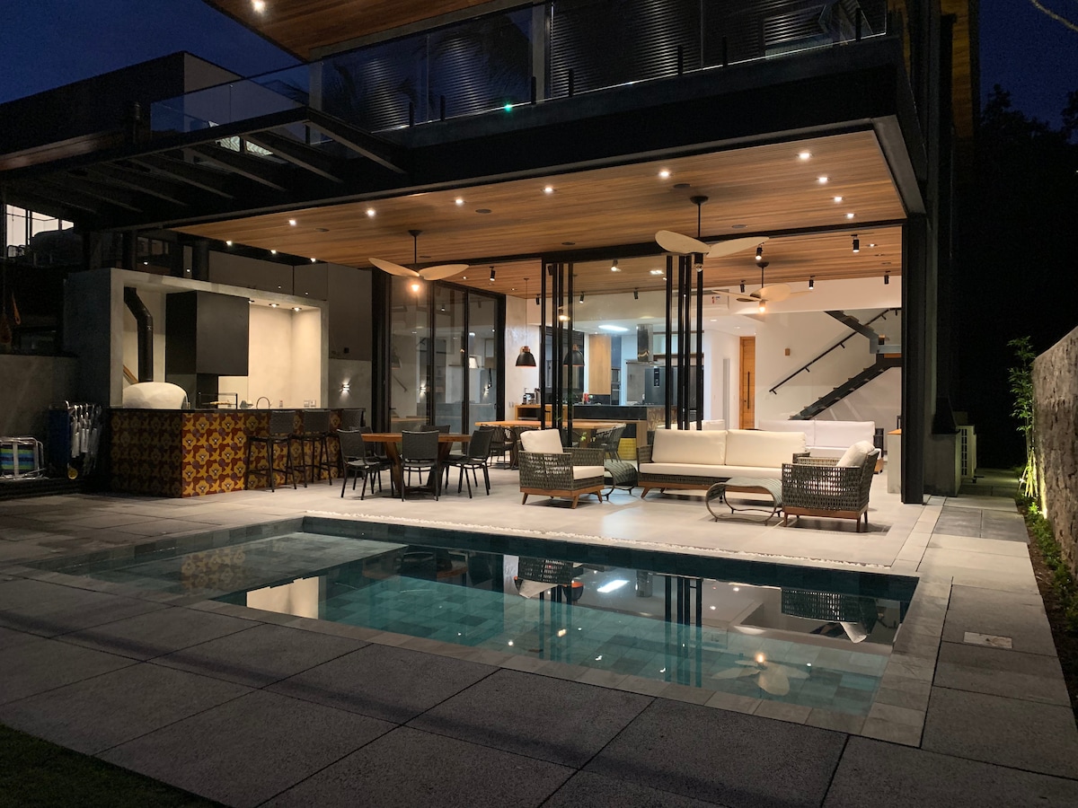 漂亮的房子,恒温游泳池,封闭式公寓。