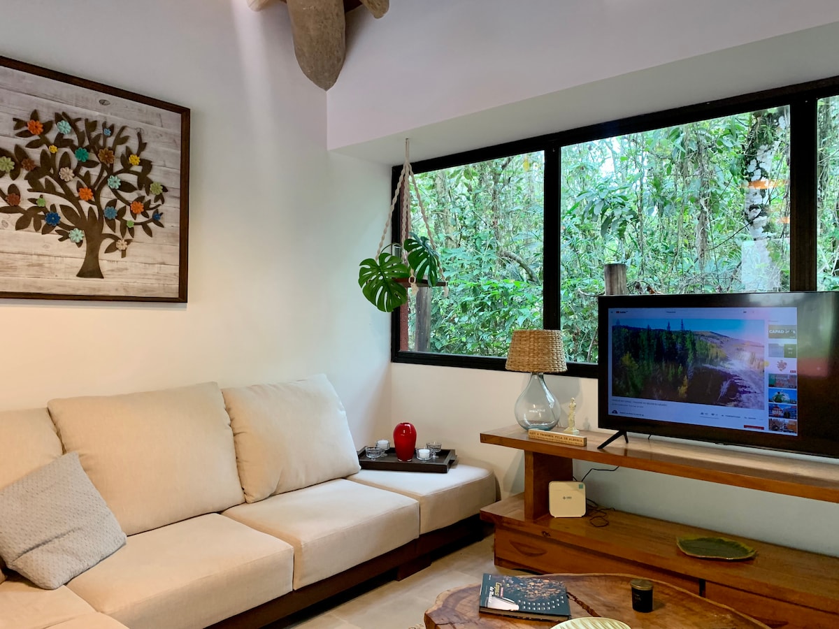 @CasasFlambo Acorde com o canto dos pássaros e o frescor da Mata Atlântica. Nosso bangalô tem estilo estúdio, é pequeno, charmoso e totalmente equipado para uma estadia confortável para até 4 hospedes. Tem churrasqueira privativa, rede na varandinha e wi-fi. Ideal para casais, famílias pequenas ou quem busca descanso e contato com a natureza. 🌴 Localizado em uma rua tranquila, segura, sem saída e a 15 minutos do mar 🐾 Pet friendly 🕒 Check-in e check-out flexíveis conforme disponibilidade