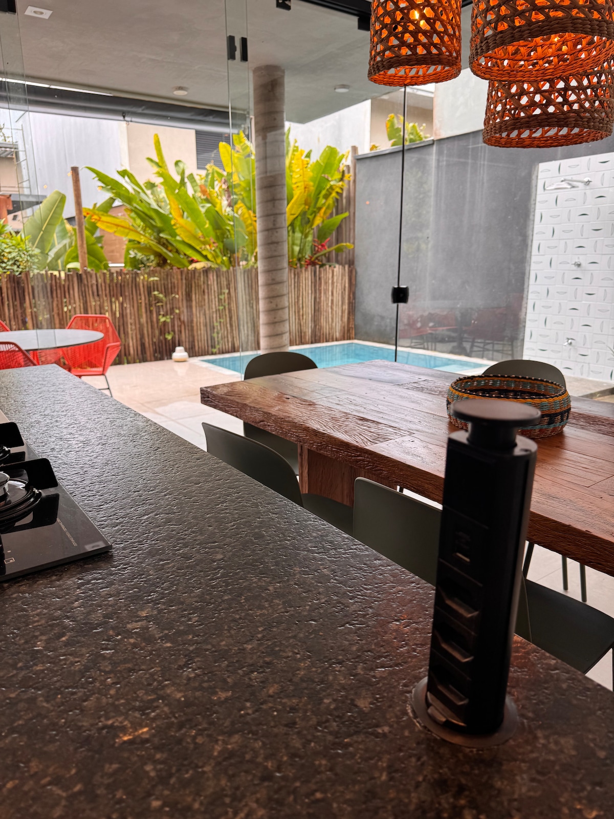 Wake up to the sound of the sea, surrounded by nature and a stunning view of the beach and mountains of Toque-Toque Grande. Cozy house in a gated community with private trail access to the beach. Perfect for families, with integrated spaces: a spacious living room connected to a fully equipped kitchen, a large suite, a second bathroom, air conditioning (living room/suite), barbecue area, and private laundry. Ideal for relaxing days with charm, comfort, and the beach vibe.