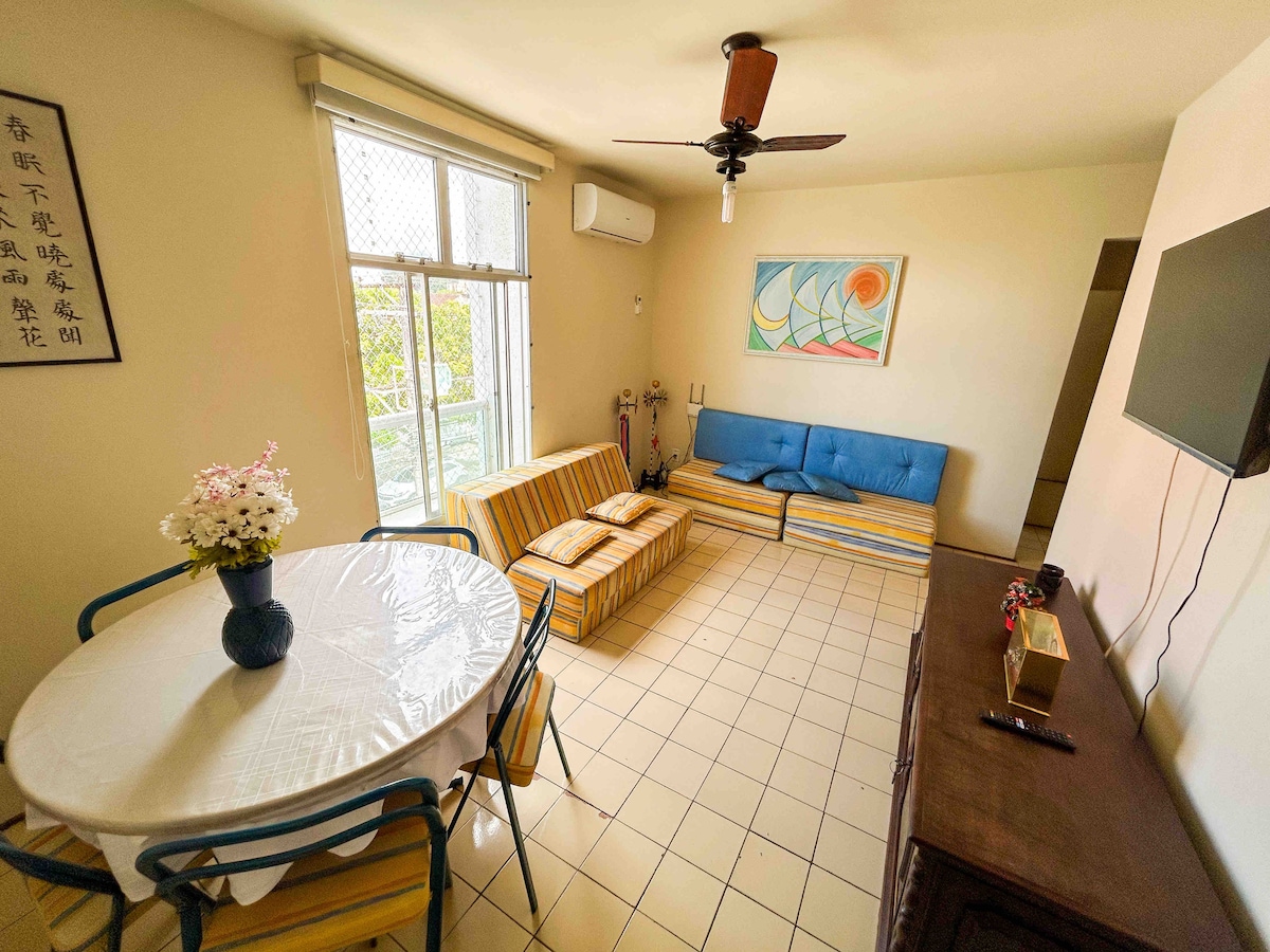 Apartamento aconchegante e recém reformado em frente para a praia Martim de Sá, com ar condicionado na sala e nos dois quartos, e TV de 42 polegadas com Netflix liberada para vocês assistirem. Nosso apartamento não tem vista para a praia, mas assim que você sair do prédio, é só atravessar a rua que você já estará na praia sem a necessidade de ficar se deslocando de carro e pegar trânsito. Temos preferência de locação para casais e famílias. Não alugamos para grupos.