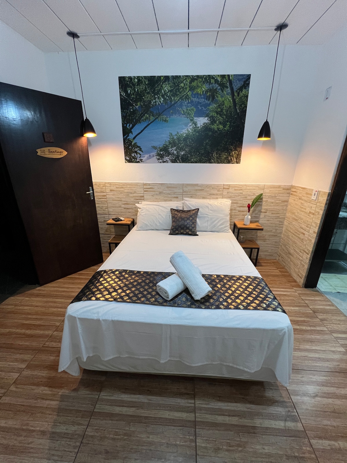 Equipado com uma cama Queen Size, que pode ser separada em duas de solteiro, o quarto oferece conforto com Ar-Condicionado Split, TV de LED, frigobar, ventilador de teto, armário e banheiro privativo completo. Acomoda 2 pessoas.