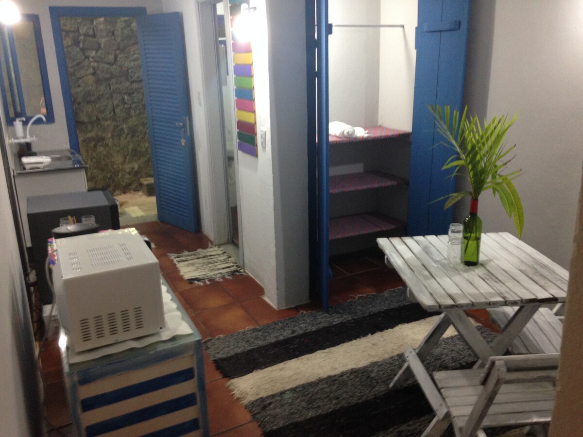 Suite com banheiro a 30m da praia. Entrada independente .Máximo: 2 adultos . Disponível na suite de uso pessoal: BANHEIRO,TV,WIFI,FRIGOBAR, AR CONDICIONADO,CAFETEIRA. A 1km o centro da cidade. Farmácia, supermercados, restaurantes. Localizada em um dos melhores bairros de São Sebastião.Em respeito aos nossos vizinhos do bairro, nao permitimos festas e nem som alto na casa. Sujeito ao cancelamento da hospedagem e multa , caso haja incômodo para os moradores do entorno.
