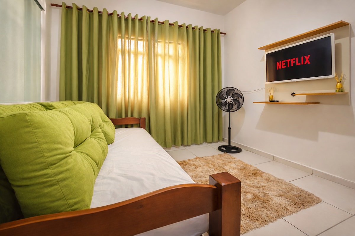 🏡Se sinta à vontade, como na casa da vó. 🔹Quarto independente, garantindo mais privacidade Cozinha equipada com fogão, geladeira e utensílios básicos Wi-Fi com boa conexão, ideal para quem precisa trabalhar Churrasqueira no quintal (uso compartilhado) Animais de estimação são bem-vindos, desde que não fiquem sozinhos 🚫Prezamos pelo silêncio e respeito: não é permitido som alto ou barulho excessivo, em nenhum horário. ✨Ideal para casais e famílias.