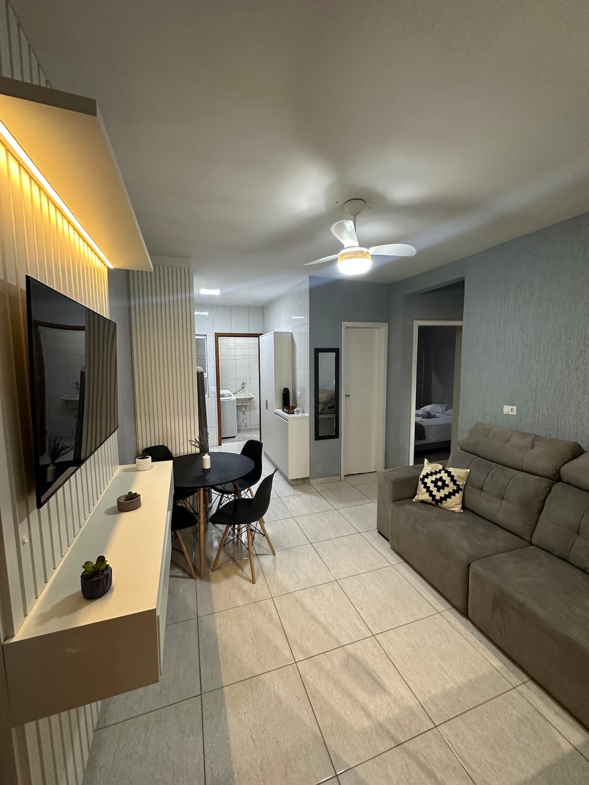 Casa no centro de Matinhos, a 700 metros do mar, com piscina privativa aquecida a 36 °C e área gourmet com churrasqueira. Recebe até 12 hóspedes, com melhor acomodação para 8, roupa de cama incluída e ambientes que atendem bem famílias, casais e grupos de amigos. A distribuição inclui 1 suíte com ar-condicionado, 2 quartos, sala com Smart TV, cozinha equipada, garagem para 4 carros e opção pet friendly, em um espaço pensado para reunir família e amigos perto da Praia Brava e do pico de surf.