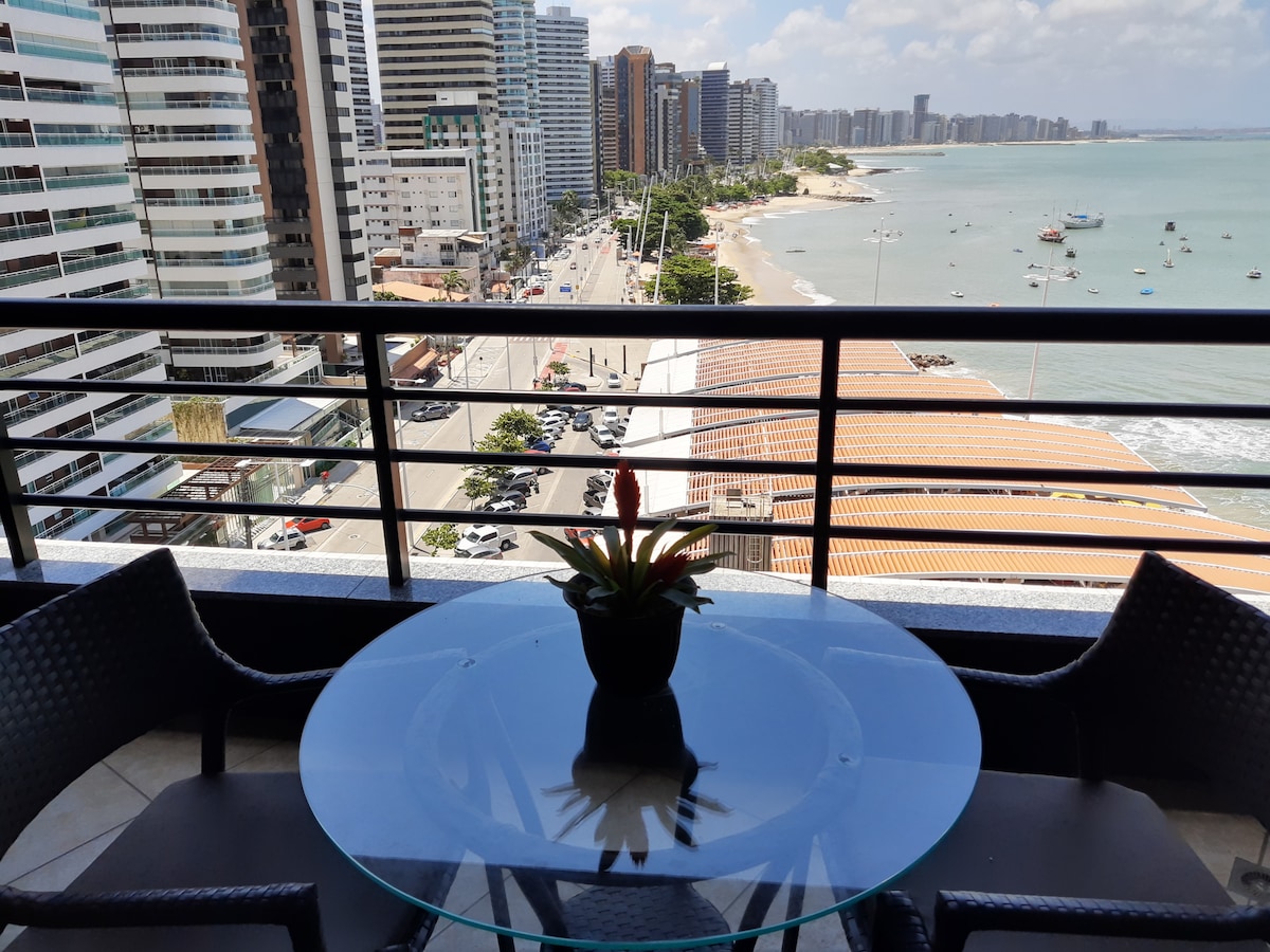 Aconchegante Flat com vista para o mar localizado na Avenida mais turística da capital Cearense. A Beira Mar possui uma grande orla repleta restaurantes e barzinhos, também a feirinha de artesanato com diversos itens culturais e é perfeita para caminhar e andar de bicicleta, tomar uma água de coco e curtir a brisa de Fortaleza.
