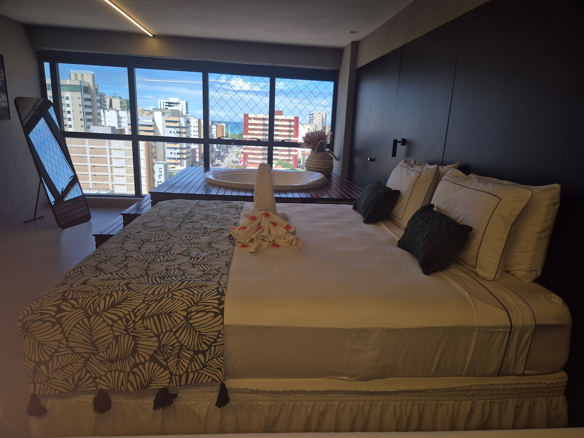 EDIFICIO SKY CONCEPT.Este lugar único tem um estilo próprio. Flat 1 quarto para até 6 hóspedes na melhor localização da Jatiúca. Prédio com sistema moderno ,lazer completo para melhor atender nossos hóspedes. Apartamento super equipado e completo com tudo que nossos visitantes precisam para uma estadia perfeita . Recém lançado , tome seu café da manhã olhando para o mar , e desfrutando de um flat decorado e equipado . Temos roupas de cama , toalhas , secador e ferro de passar roupas e máquina.