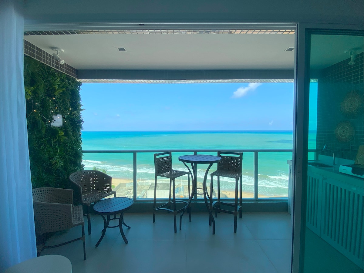 Apartamento à beira mar de uma das Praias mais lindas do Nordeste Brasileiro, Flat com recepção 24 horas,Cobertura com piscina, deck, sauna, Wi-Fi, aparelhos de ginástica, salão de jogos, próximo aos melhores restaurantes, bares, lojas, feira de artesanato, supermercados, farmácias e comidas típicas. Em frente a saída das jangadas para visitar a piscina natural.