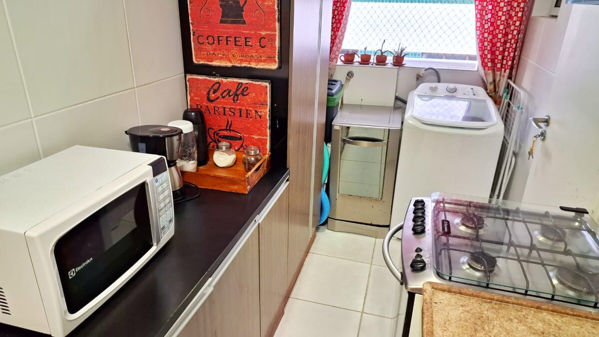 Apartamento-estúdio aconchegante situado na Ponta Verde, bairro nobre de Maceió. Localizado à 300m da praia, 650m da feirinha de artesanato da Pajuçara, 1,8km das piscinas naturais de Maceió e próximo a bares, restaurantes, supermercados e shoppings, está no coração de Maceió. O estúdio inclui Smart TV, wifi e banheiro privativo com chuveiro, secador de cabelo e ferro elétrico, enquanto a cozinha tem micro-ondas, geladeira, fogão, cafeteira ,sanduicheira, panelas,pratos, xícaras, taças vinho.