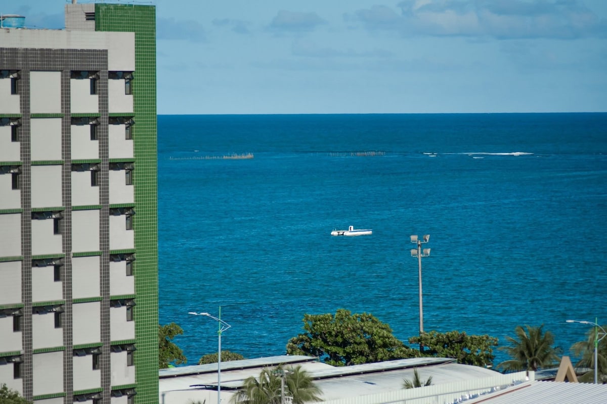 Nos permita te apresentar o melhor de Maceió! Desperte com a vista mais linda do mar em Pajuçara, uma das Praias mais lindas de Maceió! 🎡 Localização imbatível! Estamos a poucos passos da nova Roda Gigante de Maceió! Pé na areia, de frente às piscinas naturais, Pavilhão do Artesanato e ótimos restaurantes. Studio completo com cama queen, sofá-cama, cozinha equipada e sacada com vista do mar. Condomínio com piscina de borda infinita no rooftop, sauna, academia, sala de jogos e SPA.