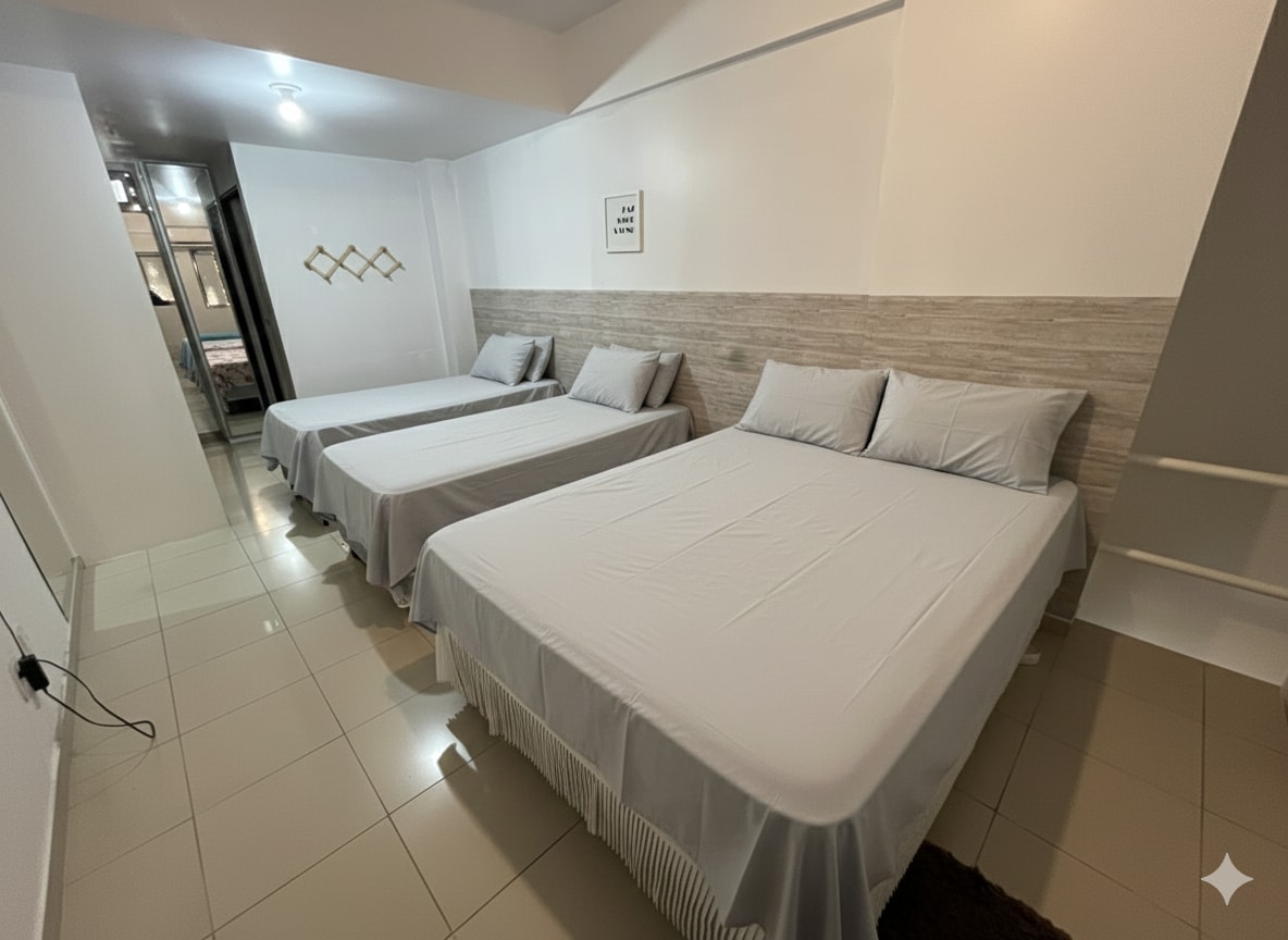 Excelente localização a 600m da orla da praia mais badalada de Maceió, Praia de Pajuçara. Apartamento espaçoso, com varanda, sala de estar com sofá retrátil, Tv de 60”, climatizada, praticamente um cinema. 3 Quartos, sendo 1 suíte e 1 suíte reversível, climatizados, camas com colchões de molas ensacadas, roupas de cama , toalhas, em 2 quartos possuem Tv de 43”. Cozinha e área de serviço completas. Obs: Consumo de energia será cobrado à parte, R$1,35kw/h.