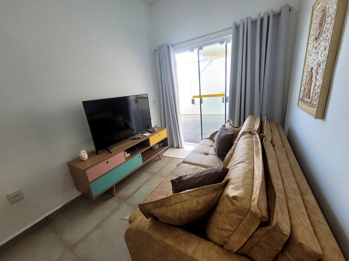 Complete, new, and with AC! Ideal for families! Just a 5-minute drive from the beach and downtown, and approximately 12 minutes walking to the beach. Modern apartment with air conditioning in both the living room and bedroom. Fully equipped American kitchen with induction stove, microwave, and coffee maker. Accommodates up to 4 people: 1 double bed and 1 sofa bed. Full amenities: fiber Wi-Fi internet, Smart TV, workspace, and parking available. Access with electronic lock.