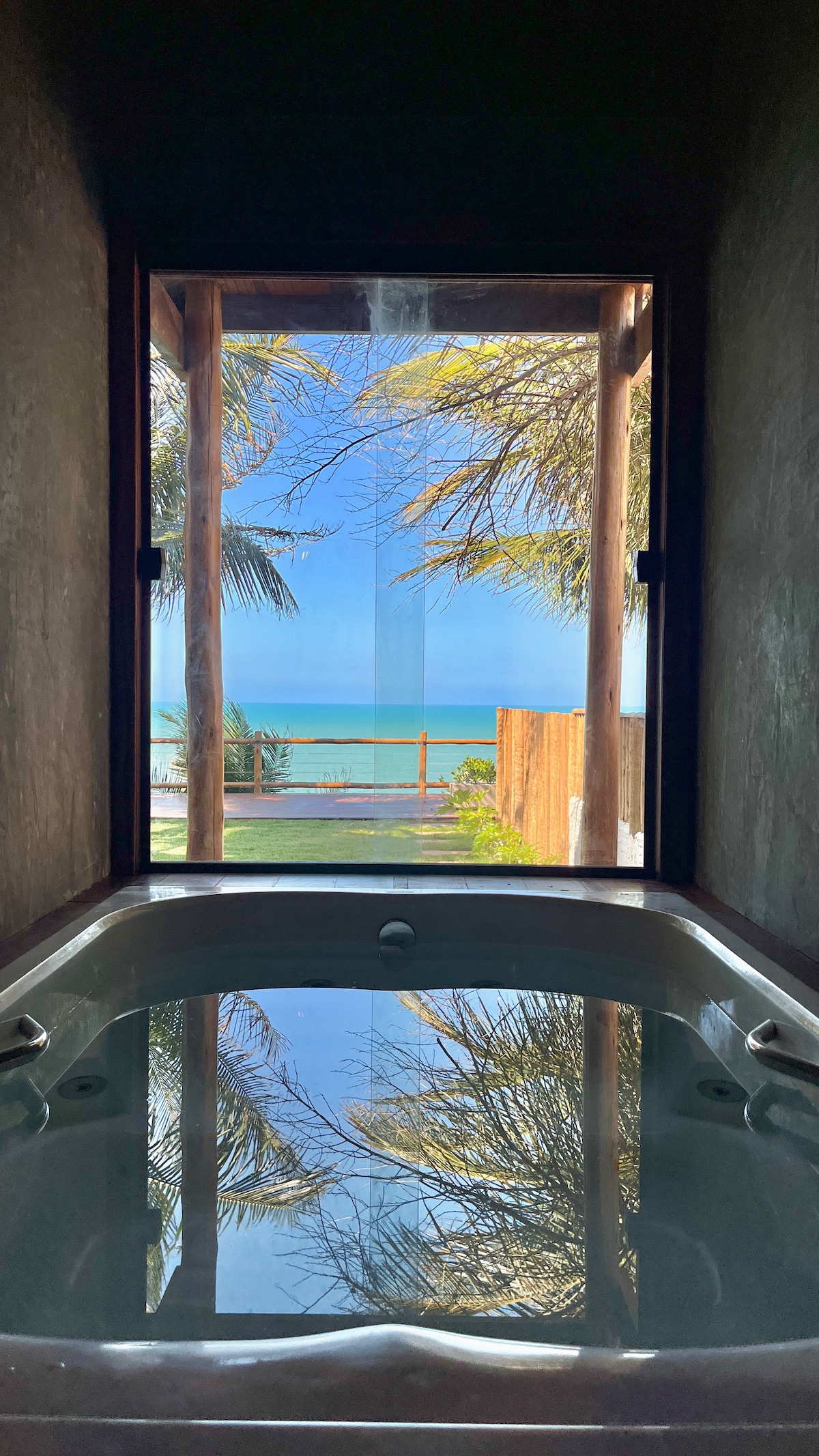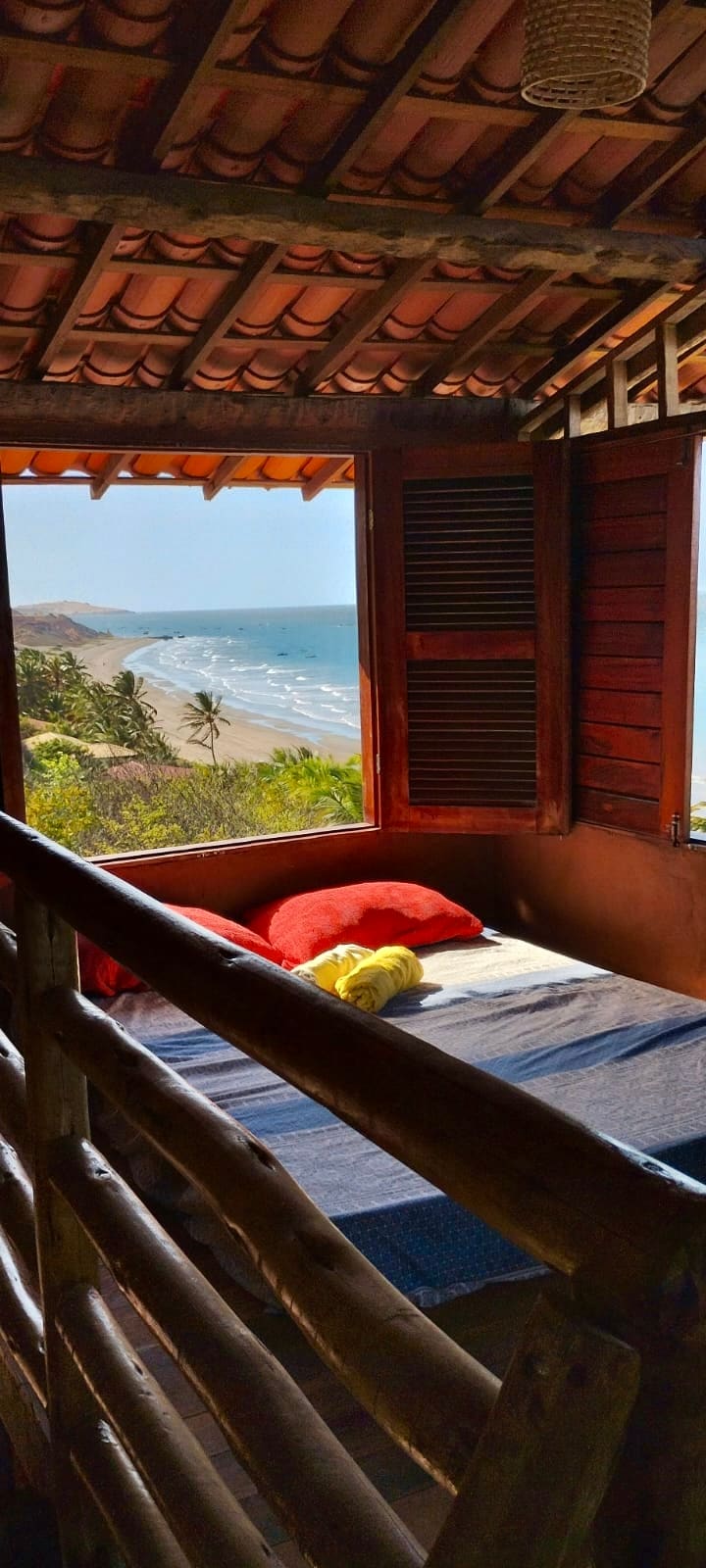This dream home is located in the beautiful Redonda Beach, a natural paradise and fisherman's village in Ceará, Brazil. Located 220km from Fortaleza, its an oasis of natural wonders. The house has a luxurious structure, with four suites of large double beds including air conditioning, mini fridge and balcony. We also a room with two single beds, and additionaly 2 single and one double mattress: The view is amazing, however is important to mention STAIRS for access. Insta @CasadaRedonda.CE