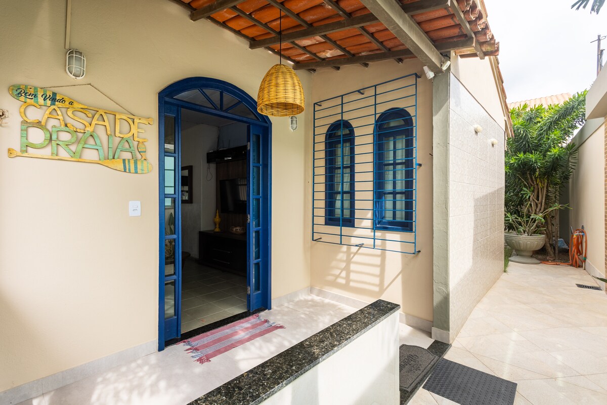 Casa de praia nova, na esquina da rua, com sol da manhã, varanda com rede, Hidro ao ar livre, ventilada com ar split e banheira na suíte e ventilador de teto em todos os cômodos. Roupas de cama e banho. Agua quente na pia, forno elétrico e fogão cooktop, geladeira nova. No quintal chuveiros, mangueiras, ofurô jacuzzi com hidromassagem e regulador de temperatura da água para se refrescar com vista para o por do sol num espaçoso quintal gramado, florido, arborizado, murado e com total segurança!
