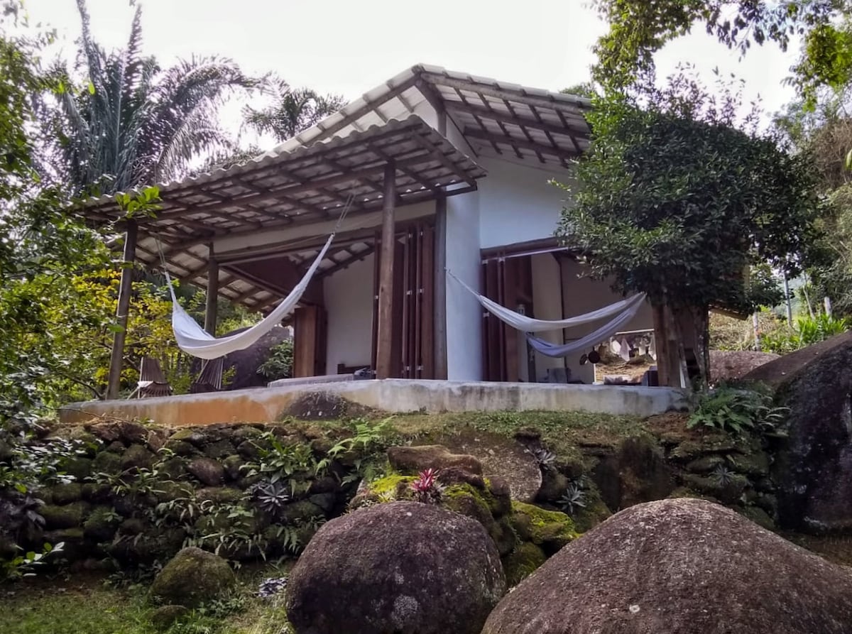 Brand new house in a quiet, paradisiacal place with total privacy, inserted in the Forest next to Parque da Bocaina in Paraty: + Panoramic view of the Valley and the Forest + 2 cozy rooms (suites) for up to 4 guests + Heated infinity pool + 100 Mbps High Speed Internet + Hot and Cold air conditioning + Private Waterfalls + Full kitchen + Gourmet Area with Barbecue and Wood Oven + 100% paved access, 10 km from downtown Paraty