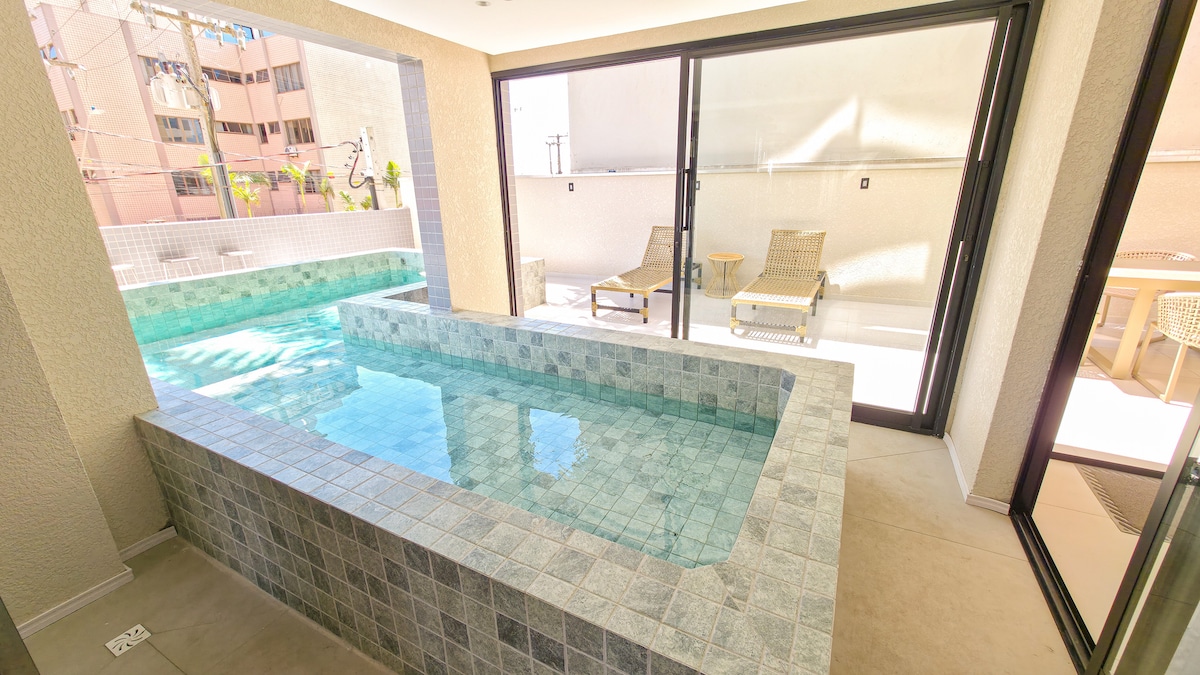 Linda cobertura Duplex, frente mar no Balneário Gaivotas com WI-FI ! Apartamento completo para você desfrutar e descansar com uma bela vista! Não deixe de ver o sol nascer! São 3 Quartos (1 suíte), ampla área externa na cobertura para relaxar e aproveitar! - Piscina privativa (2,50LargX0,6 prof.) - Churrasqueira - 3 Quartos todos vista Mar - 3 Banheiros - WI-FI: Internet 150 Mega fibra - TV Sala 55 com NETFLIX + 43 suite - Cozinha completa - Maq. Lavar Roupa/Microondas - 1 vaga Garagem Coberta