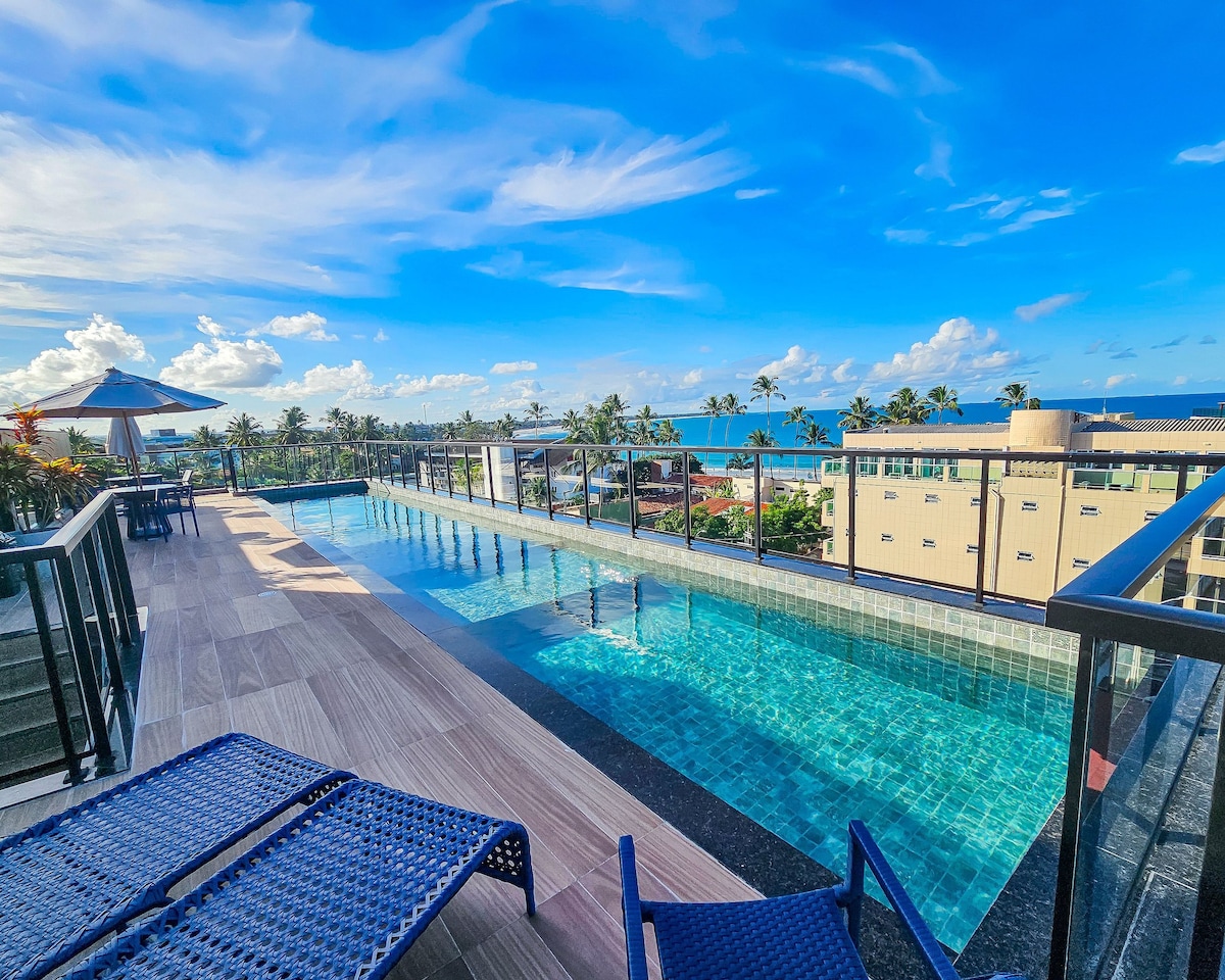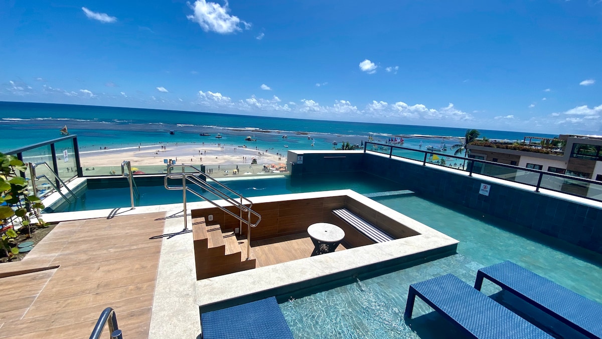 Bem-vindo ao nosso apartamento recém-inaugurado em Porto de Galinhas, a praia mais popular do Nordeste do Brasil. O apartamento é ideal para hóspedes que desejam um apartamento studio com uma cozinha compacta equipada, uma cama de casal e uma bicama confortável, tudo isso na beira da praia das piscinas naturais, uma das principais atrações da cidade e 100m da rua principal de Porto. Aproveite também do nosso rooftop com churrasqueira e uma piscina com borda infinita de frente para o mar.