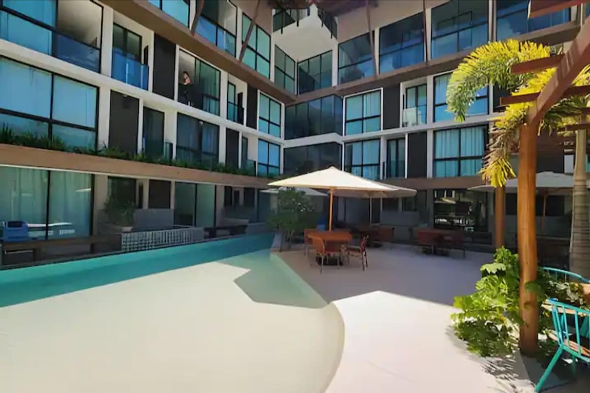 Lindo apto quarto e sala cheio de estilo em Porto de Galinhas ✨ Já pensou em se hospedar no centro de Porto, com uma piscina no rooftop esperando por você após a praia? 🌊 Nosso quarto e sala oferece o equilíbrio perfeito entre lazer e funcionalidade: ✅ Academia & Coworking ✅ Brinquedoteca & Lavanderia ✅ Restaurante no térreo com café da manhã (desconto exclusivo para hóspedes! ☕🍳) - opcional Tudo isso no "coração" da vila mais charmosa do Brasil. 🇧🇷