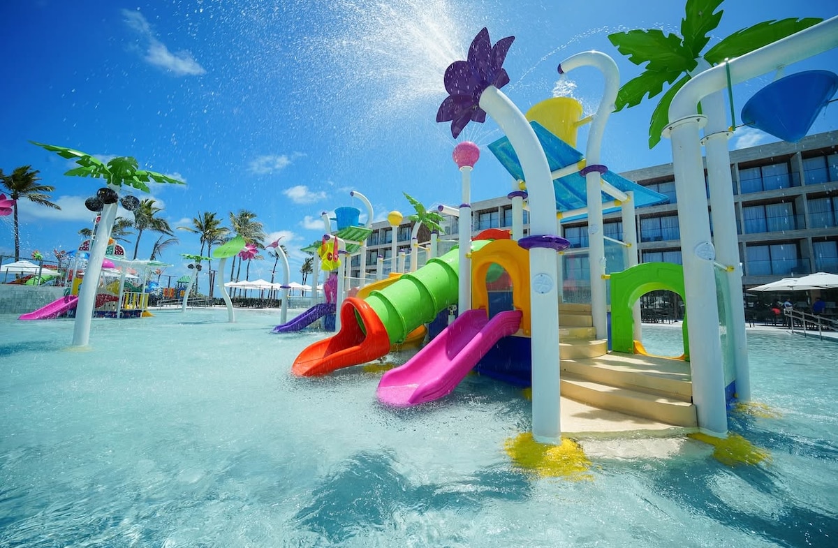 O mais novo, e um dos melhores resorts de Pernambuco ao seu alcance. Apartamento de 1 quarto, sala com cozinha e varanda, totalmente equipado. O resort é um verdadeiro playground, voltado para família, conta com Kids Water Park, duas brinquedotecas completas e piscinas com prainhas infantis para as crianças. Inclui ainda um boliche com seis pistas, duas salas de cinema e um complexo de jogos eletrônicos. Academia de ponta, quadras esportivas, minigolfe e um SPA relaxante com bangalôs.