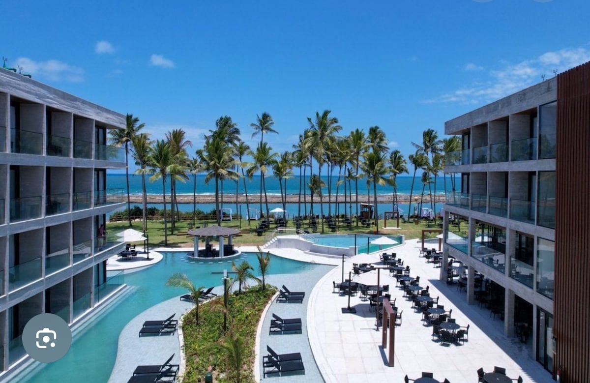 Curta uma experiência luxuosa ao ficar neste lugar especial.quarto com cama de casal e sala com sofá cama pra 2 pessoas,tv e ar condicionado em todos os cômodos,Resort novo e de altíssima qualidade,são várias piscinas para desfrute de sua família,pé na areia com piscinas naturais e passeios incríveis