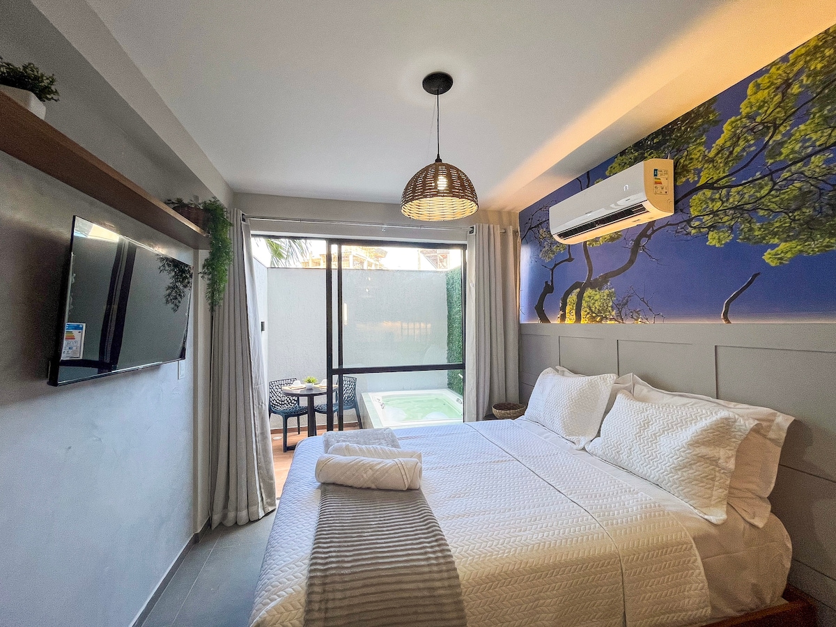 O flat Mykonos está localizado no coração de Porto de Galinhas, a poucos metros dos melhores restaurantes e a 30 metros do melhor trecho da praia, em frente das piscinas naturais. O Studio possui uma cozinha compacta, terraço com vista parcial para o mar, uma cama Queen com bicama. São fornecidos jogos de cama e toalha. O prédio é novo, foi inaugurado em novembro de 2022, e possui um magnífico rooftop com piscina e uma vista deslumbrante para as piscina naturais. Possui estacionamento rotativo.