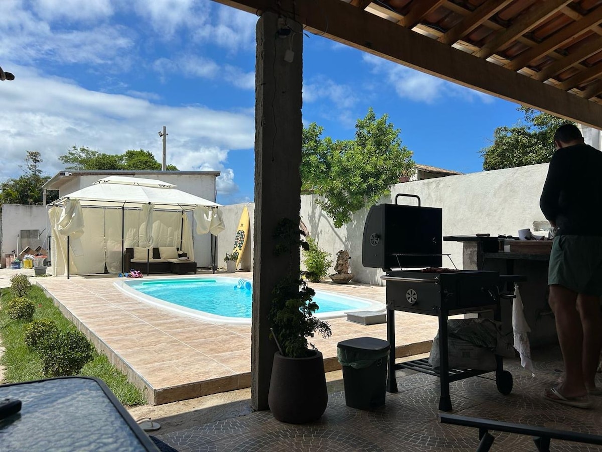 O chalé fica em um condomínio intimista com apenas 6 unidades, tendo uma piscina de uso coletivo. Nosso espaço é aconchegante e espaçoso, possui 1 suíte com varanda, 1 quarto com saída para um quintal aos fundos, banheiro social, cozinha integrada com a sala. A sala é bem iluminada devido portas de vidro que dão acesso ao quintal privativo do chalé, que conta com churrasqueira e jardim. Distância de 900 metros da praia, aproximadamente 11 minutos à pé. O chalé conta com internet fibra de 200MB.