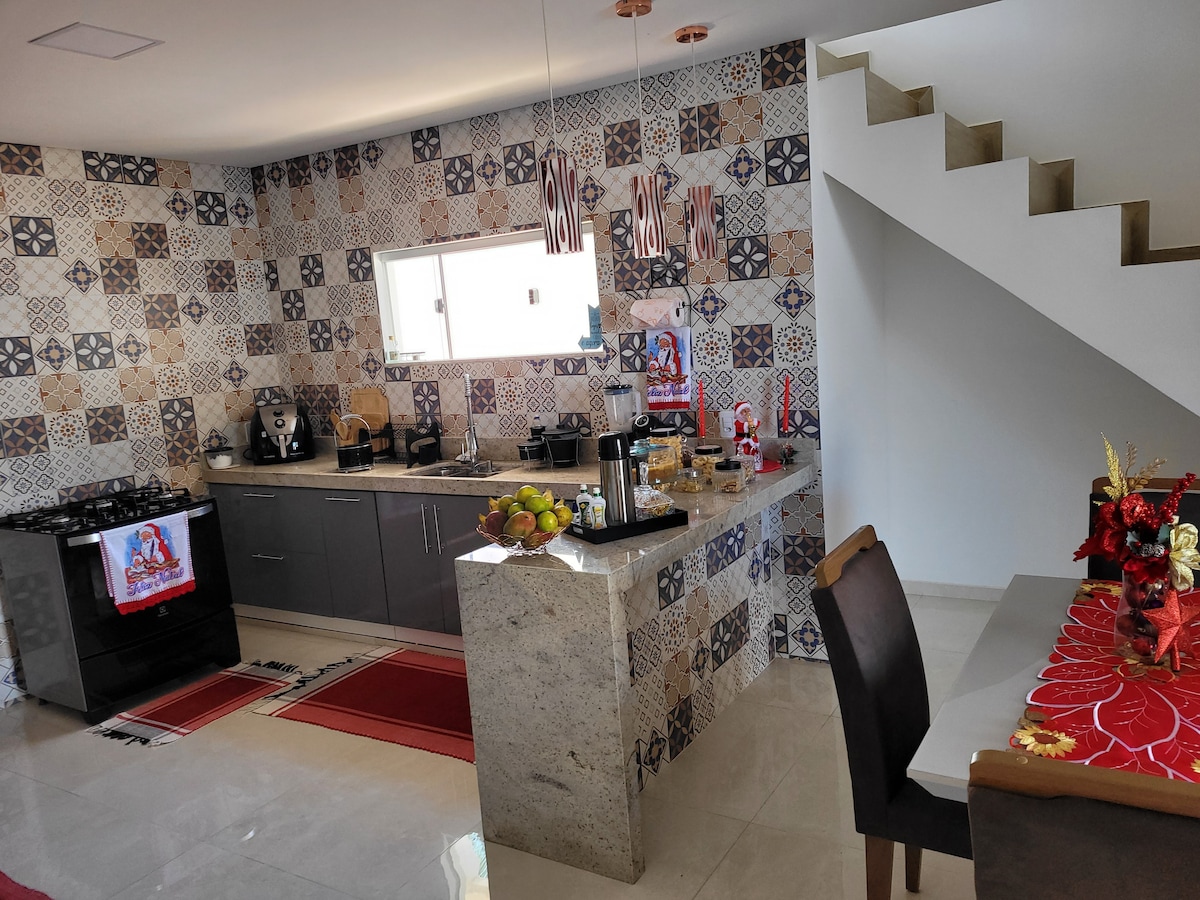 Bem-vindos à nossa casa em Porto Seguro! O nosso duplex esta localizado na praia de Taperapuan , próximo da barraca axé mói, boa beach, colher de pau, supermercados, farmácia e etc, onde você não precisa esta deslocando de carro pra ir a praia. Temos 3 quartos, sendo 2 com suítes, 1 banheiro social, ar-condicionado em todos os quartos, tv em todos os quartos, cozinha completa, sala com tv de 60”, área de serviço, e o condomínio dispõe de piscina, área de churrasco e garagem. Temos Wi-fi.