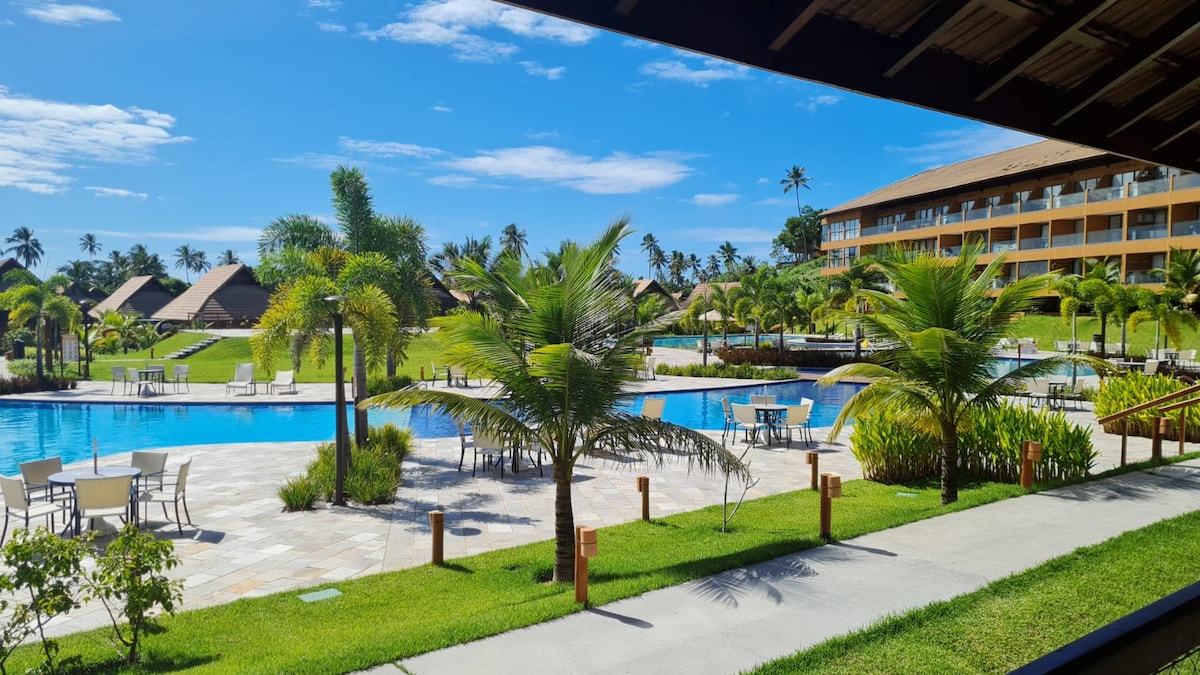 Localizado no melhor trecho da paradisíaca praia dos Carneiros, bem ao lado da igrejinha, este flat encontra-se num resort de alto padrão, à beira-mar, que conta com piscinas, academia, quadras de vôlei de praia e de beach tennis, slackline, quadra de tênis e poliesportiva; cadeiras e ombrelones na praia, além de vasta área verde. Para a sua comodidade, o condomínio possui um mercadinho bem sortido e 2 restaurantes que fornecem serviços opcionais de café da manhã, almoço e jantar.