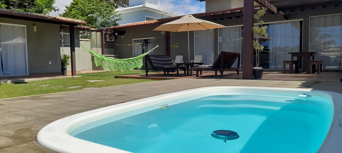 Lovely one bedroom house. located at 200m from the Manguinho's Beach, next to supermarket and 15 min walking distance from Geribá Beach. The house has a kitchen with all the domestics needed, a common area with a pool and barbecue grill , bedroom with air condicioner and a living room with a double bed. It still has the hosts living at the same area, guaranteeing all the necessary support during the lodging time. Excelent house for friends and small families to enjoy the city.