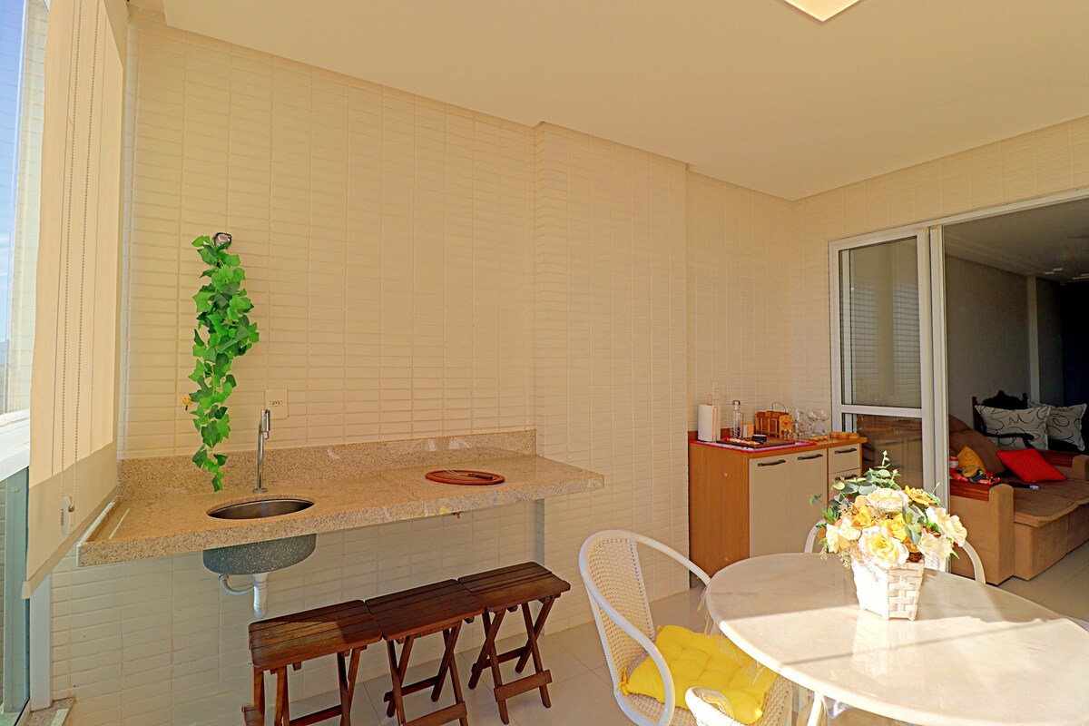 Apt novo, 3 qts com ar condicionado/churrasqueira.
