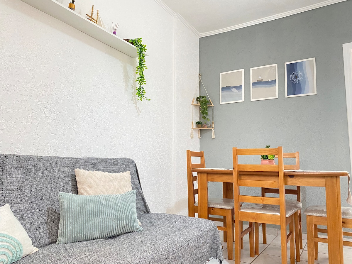 Apartamento charmoso e funcional à menos de 5 minutos da praia. - 5° andar/ 300 metros da praia - Sala com ventilador de teto, mesa com 4 cadeiras, sofá retratil e TV 32" - 01 dormitório com cama de casal, guarda roupa, ventilador de mesa e dois colchões extra. - Sacada gourmet com churrasqueira elétrica e rede de proteção. - Cozinha com geladeira, fogão, micro-ondas, liquidificador, panelas e utensílios no geral. - 01 vaga de garagem inclusa (VEÍCULO PEQUENO PORTE). - Wi-Fi disponível.
