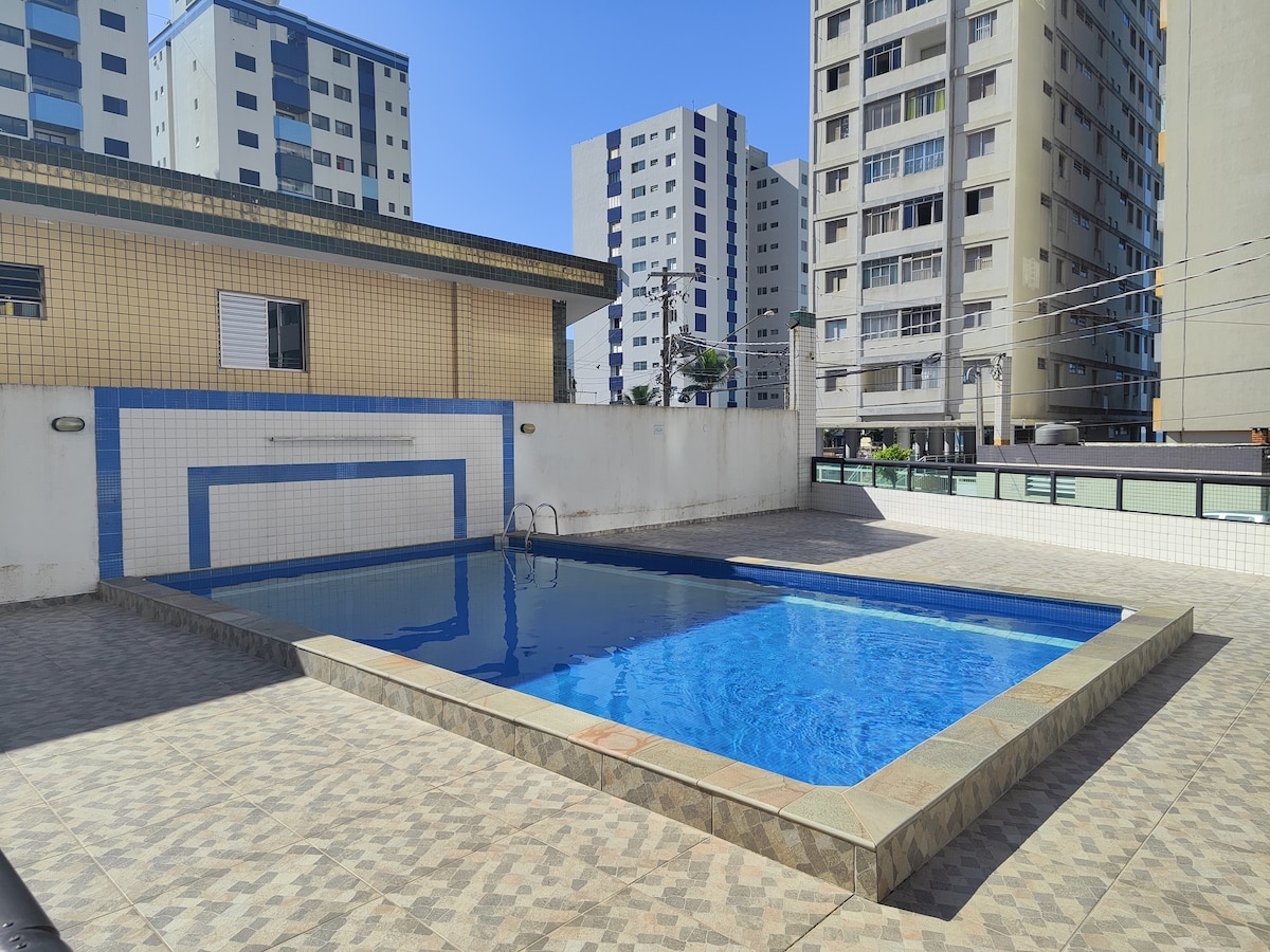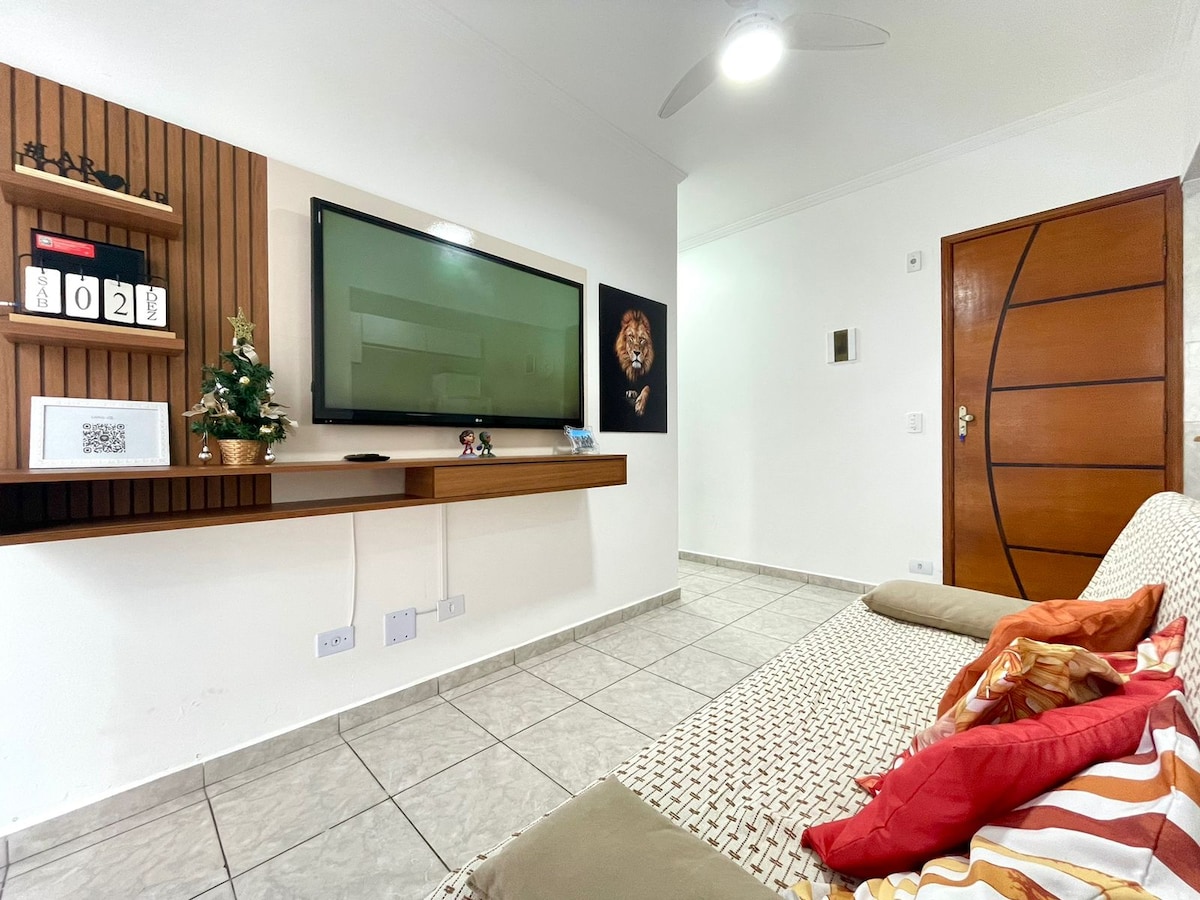 Apartamento 1 Dormitório, 50 metros do mar. Bairro Vila Mirim - Praia Grande - SP. Wi-Fi Vivo Fibra ideal p/ Home Office 7.º andar, Frente para Rua, Tela Proteção, Sacada no quarto, Elevador, Portaria 24h, Garagem Coberta. Comércios em geral * Smart Tv com Amazon Fire Tv Stick 4K Streaming com (Prime Vídeo, Vivo Play e Pluto Tv Grátis) Fácil acesso. - 1,0 Km Feirinha Artesanatos e Food Truck Ocian - 1,5 Km Parquinho Ocian - Boutique do Peixe - 2,0 Km Fonte Água Interativa Vila Tupi