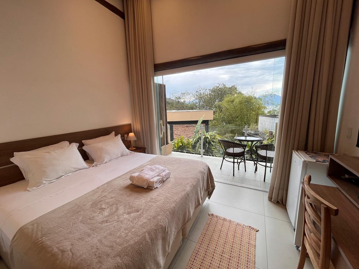 Casa com decoração rústica e clean ,todos os quartos possuem vista para para mata atlântica, área compartilhada com um super vista para o mar (apenas cozinha e sala de jantar) proporcionando um visual inesquecível, quartos com sacada ,roupas de cama com qualidade hoteleira, cama king size ,que podem ser separadas ,tv smart ,ar condicionado e frigobar, aqui o hóspede se senti em casa!